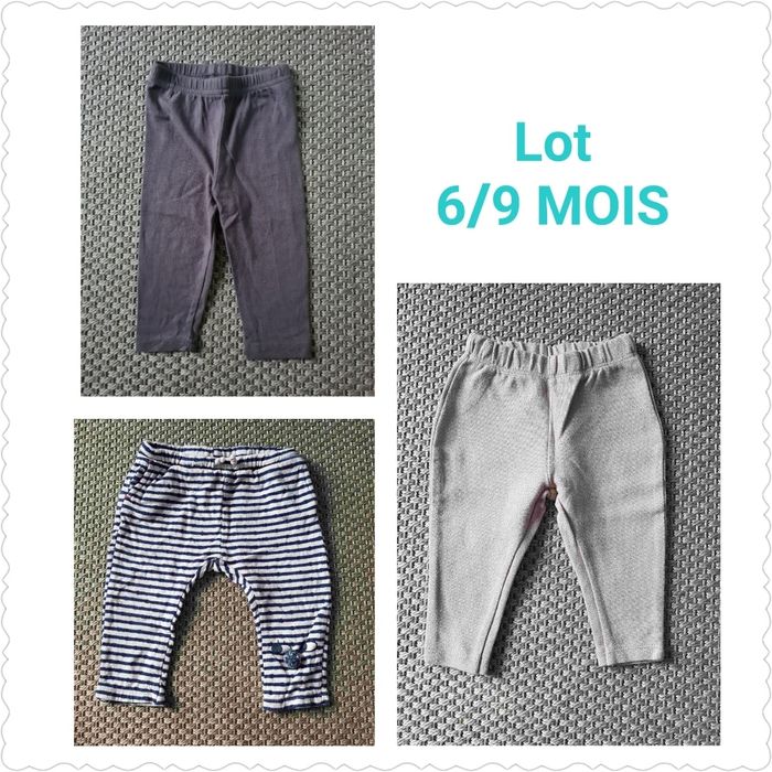 Lot de 3 tregging/leggin : - 1 tregging beige peu porté il est comme neuf. Ceinture élastique. Taille 6/9 mois - 74 cm - marque zara - 1 legging avec motif marin porté. Ceinture élastique. Taille 6/9 mois - 74 cm - marque zara - 1 legging gris porté. Ceinture élastique. Taille 6 mois - marque inconnue Envoi rapide et soigné. J'applique une réduction si vous prenez plusieurs articles de mon dressing Photos supplémentaires possible sur demande