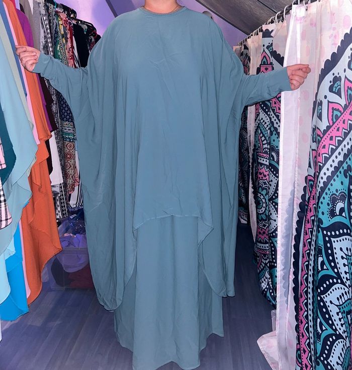 Ensemble en soie de medine composé d’une longue tunique papillon asymétrique et une jupe élastique , taillle unique convient aux petites comme aux grandes tailles #ensemblesoiedemedine