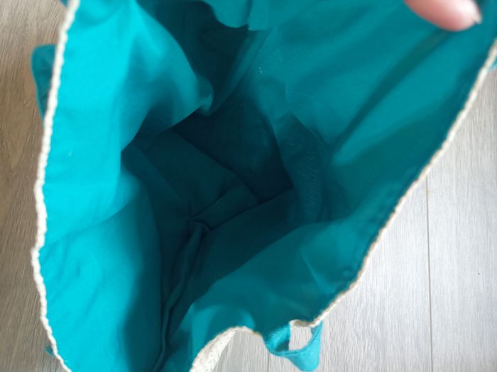 Sac fourre tout en tissu turquoise et paille Très bon état