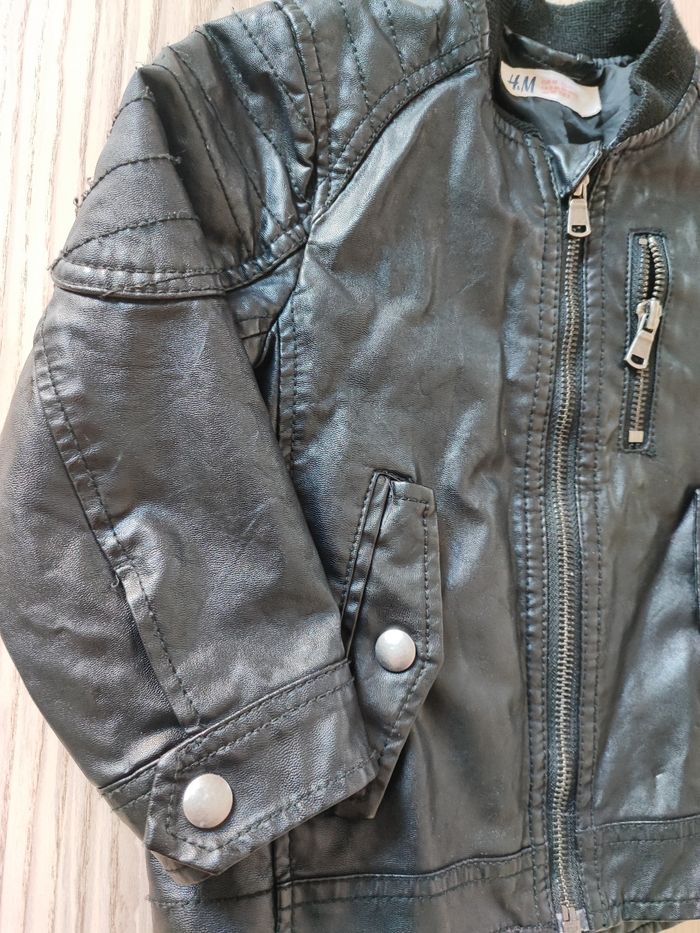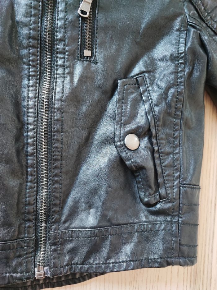 Veste aspect cuir. Marque H&M. Taille 98cm. Déjà porté. Quelques traces d'usure comme en photos. Bon état Mini défauts sous la poche comme en photos. #tennyteb3ans #tennyteb36mois #tennyteb23mois #tennyteb24mois #tennyteb2ans