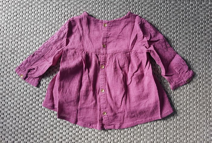 Blouse portée quelques fois mais toujours en très bon état. Sans taches ni trous. Taille 6 mois - 63/69 cm - marque kiabi Envoi rapide et soigné. J'applique une réduction si vous prenez plusieurs articles de mon dressing