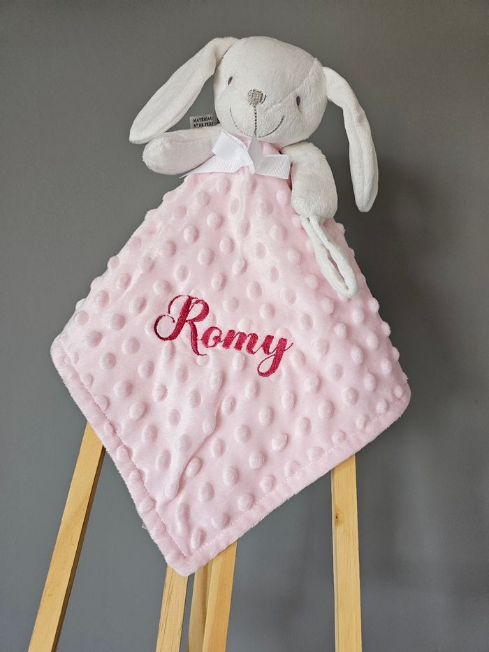 Doudou lapin personnalisé Prénom broder Couleur et écriture à choisir