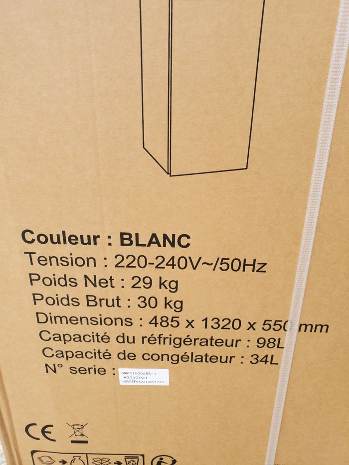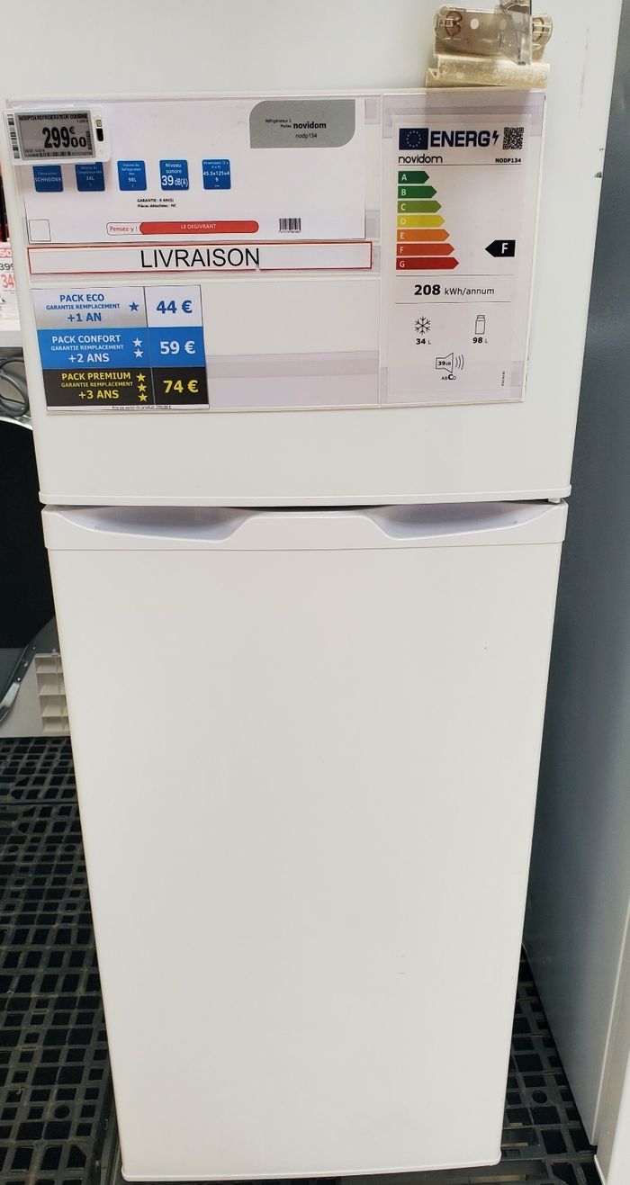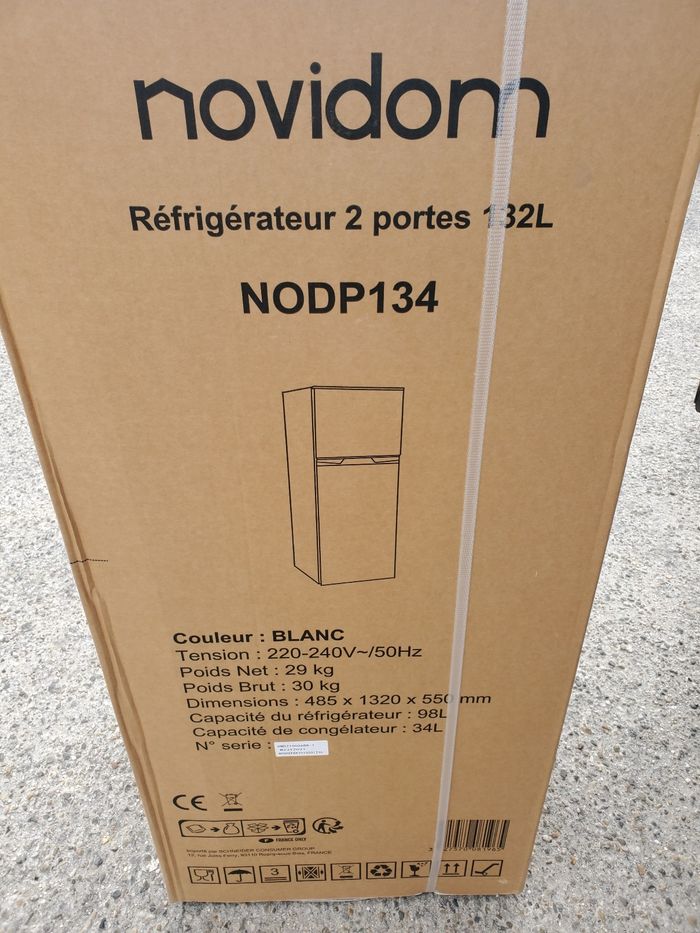 Réfrigérateur Congélateur NOVIDOM NODP134 Neuf jamais ouvert avec facture d'achat Prix 150 Euros. Hauteur : 1,32M