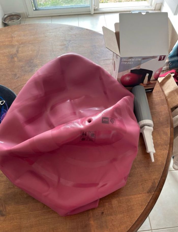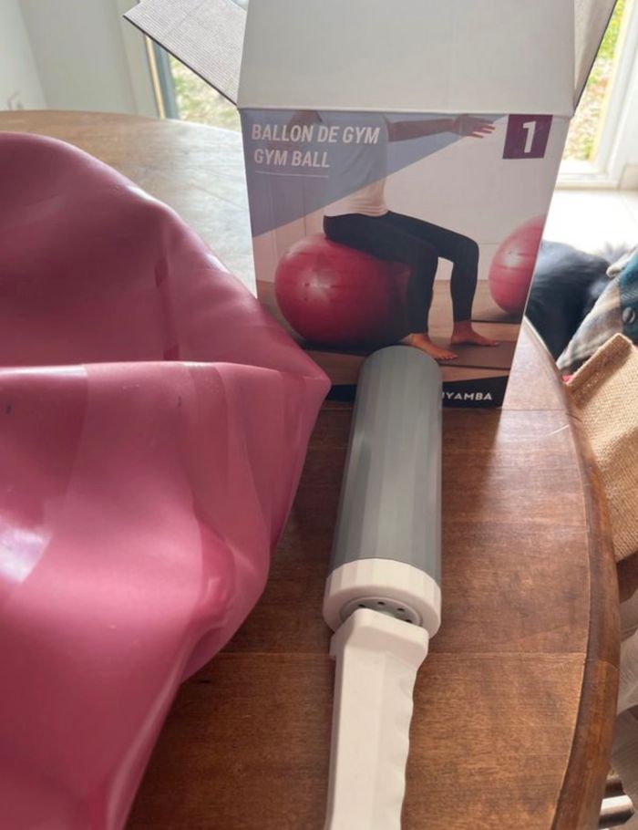 Ballon de grossesse vendu avec la pompe pour pouvoir le gonfler. Il est de taille 1