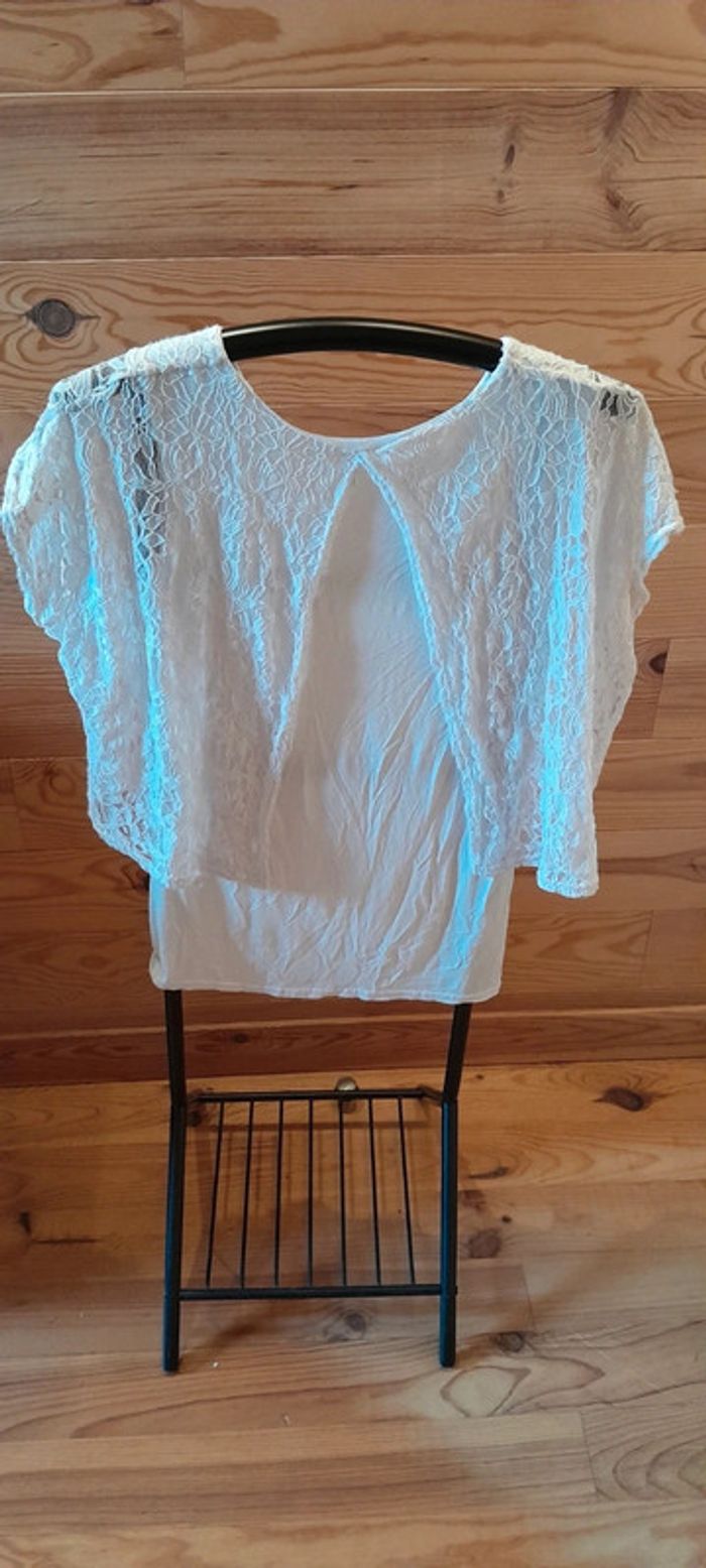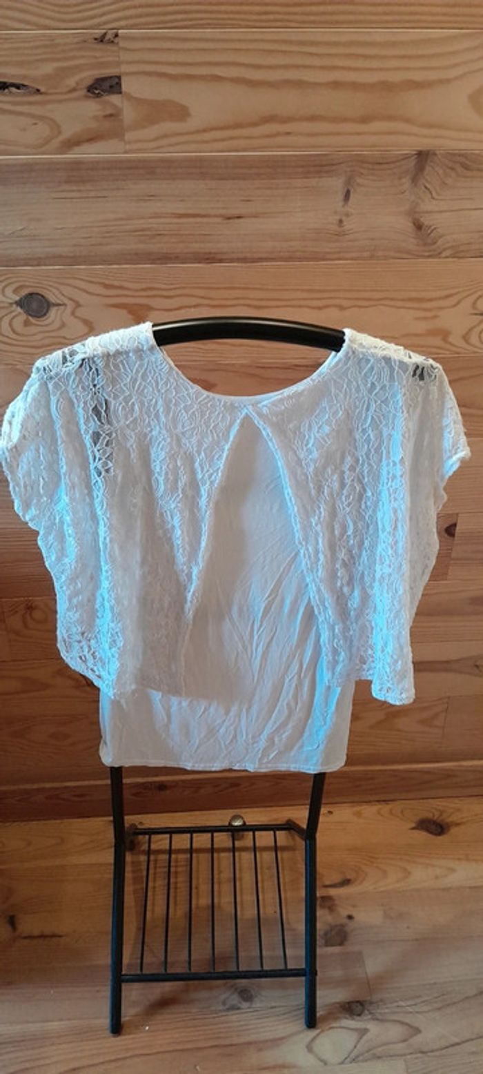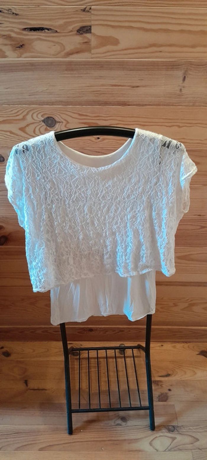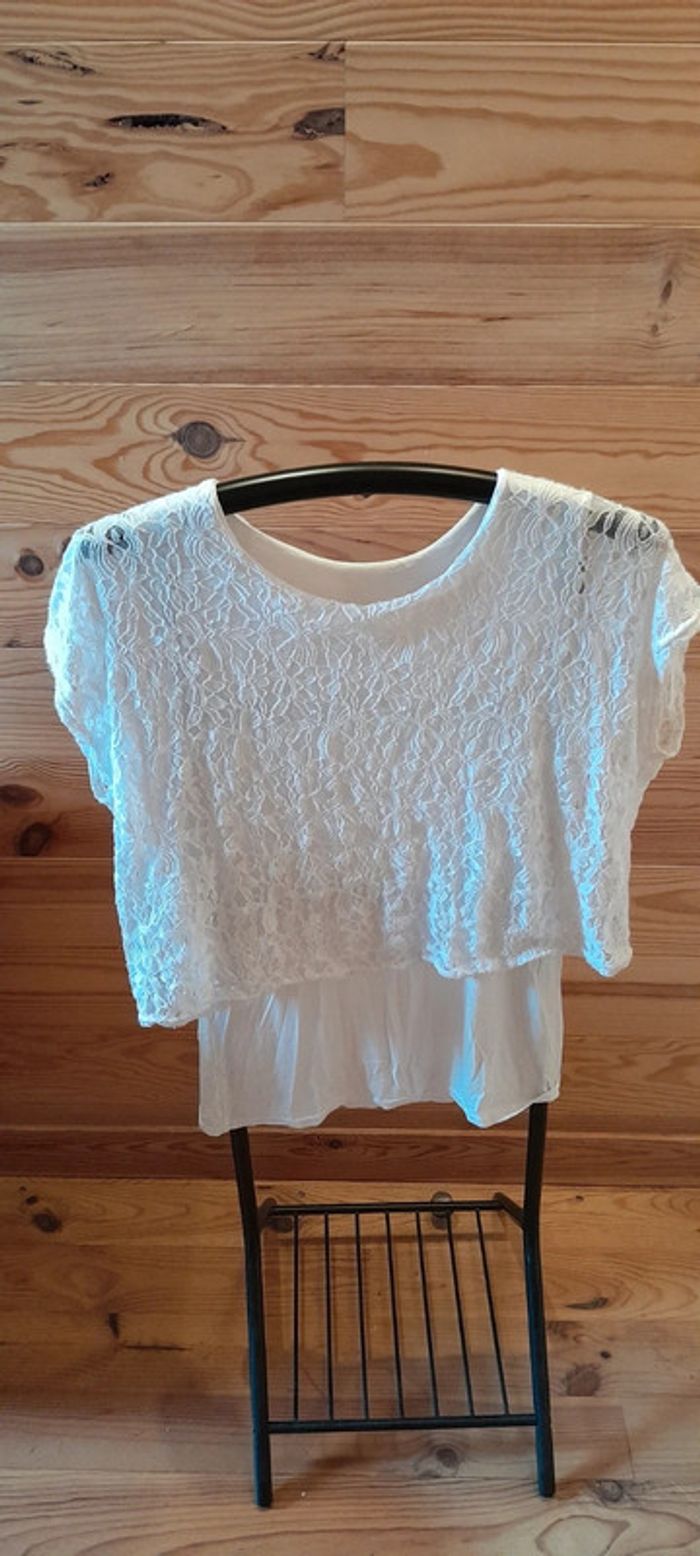 Haut manches courtes T 3 L/XL 2 épaisseurs un tissu blanc et par-dessus dentelle