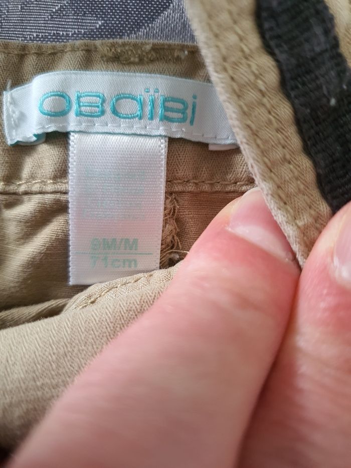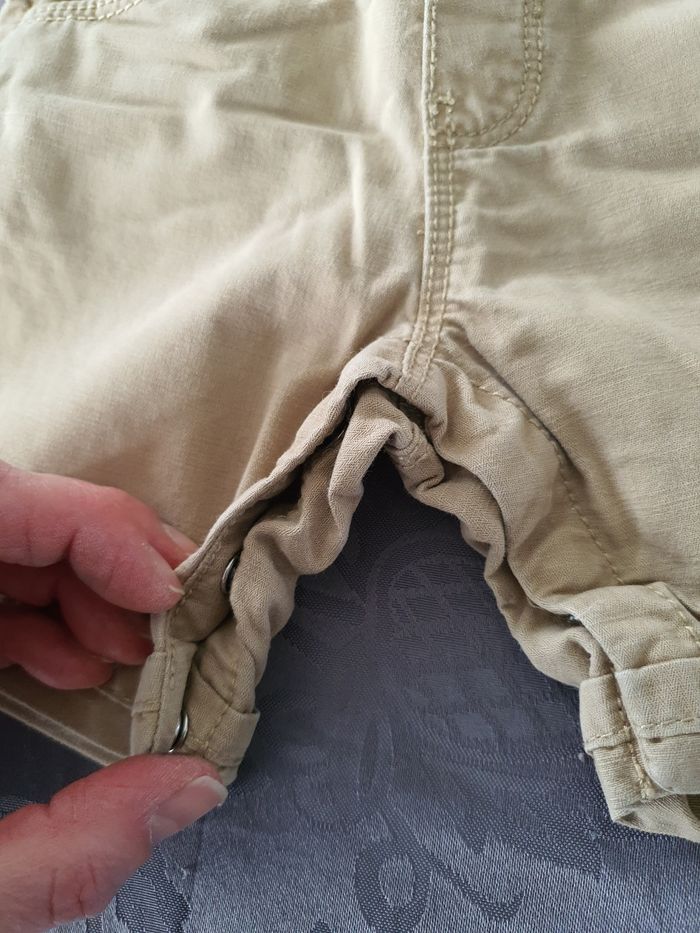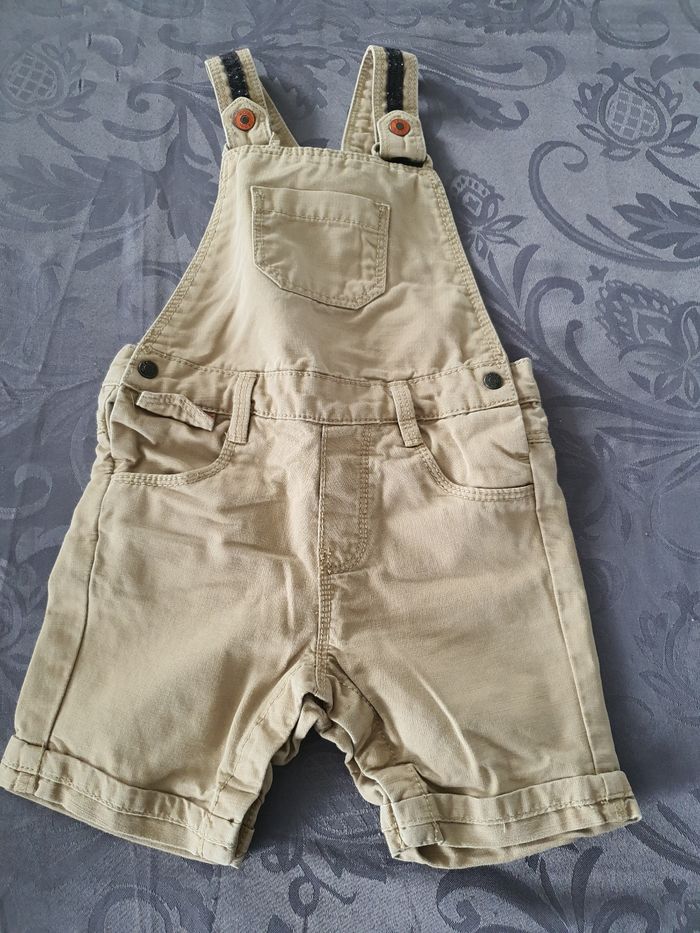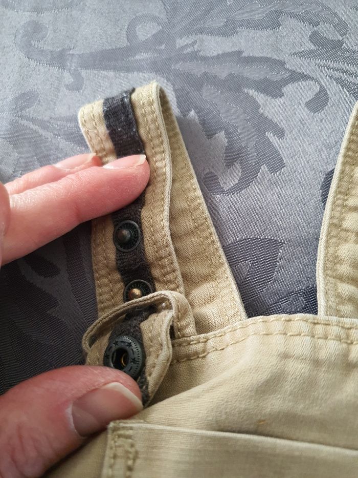 Salopette beige . Les bretelles se ferment par pressions. Pressions également au niveau de l'entrejambe Taille 9 mois Très bon état