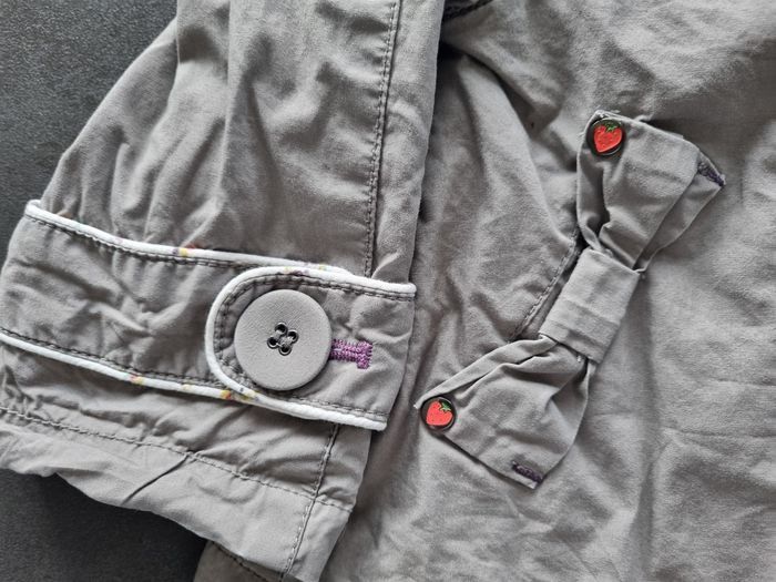 Très jolie veste légère grise Sergent major, ouverture boutons, 2 poches, boutons décoratifs manches, 24 mois/86cm Très bon état Possibilité de faire un lot. N'hésitez pas si questions ou besoin d'autres photos.