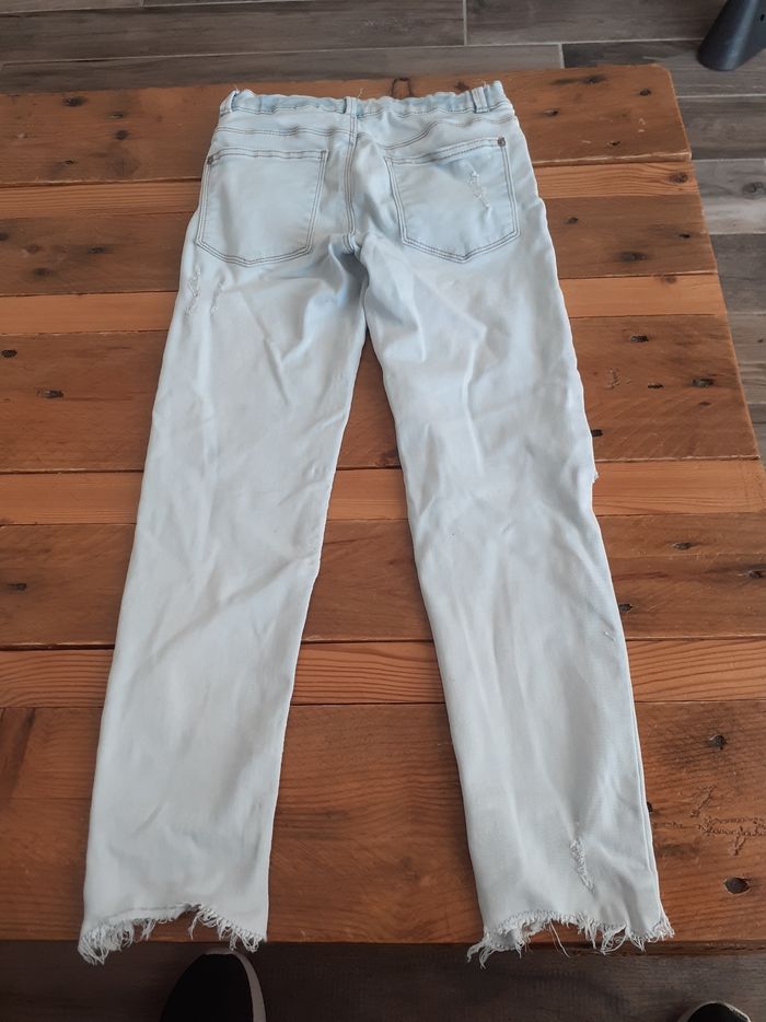 Jeans taille 10 ans en bon état,porté quelques petites tâches peu visible et un accro sur le haut d'une poche.