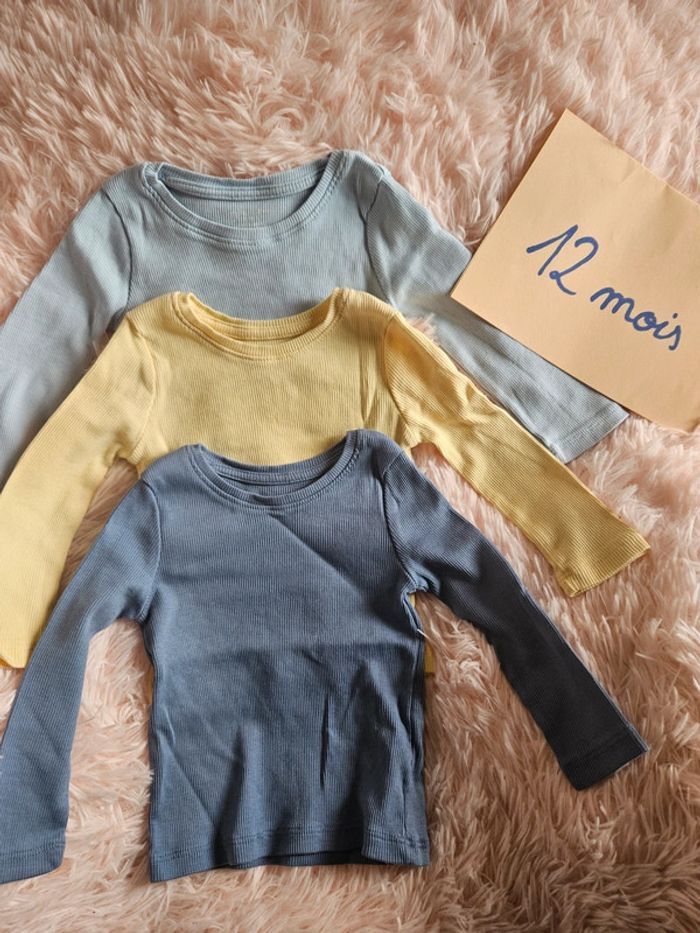 Neuf jamais porté juste lavé, lot 2 t-shirt manches longues. Taille étiquette 9-12 mois 80cm mais correspond plutôt à un "vrai" 9-12 mois c'est à dire 71-74cm #9moisbelibel54 ##12moisbelibel54 #tshirtbebe