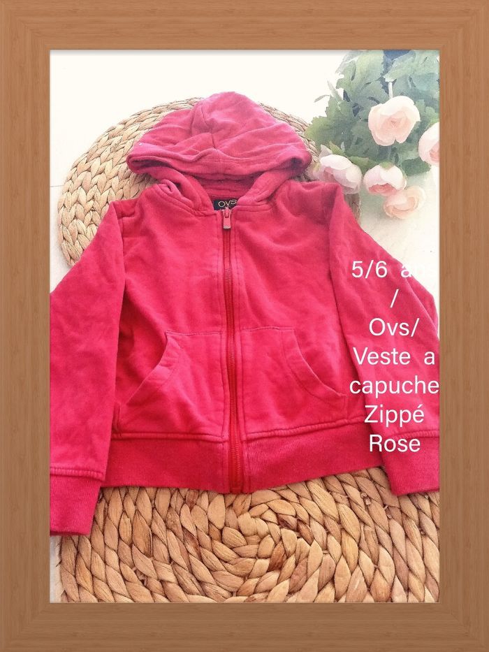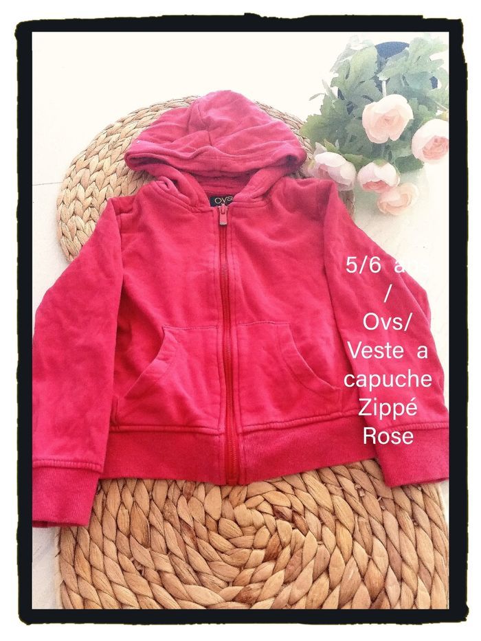 5/6 ans OVS veste gilet zippé a capuche rose toutes saisons /bon état - photo numéro 1