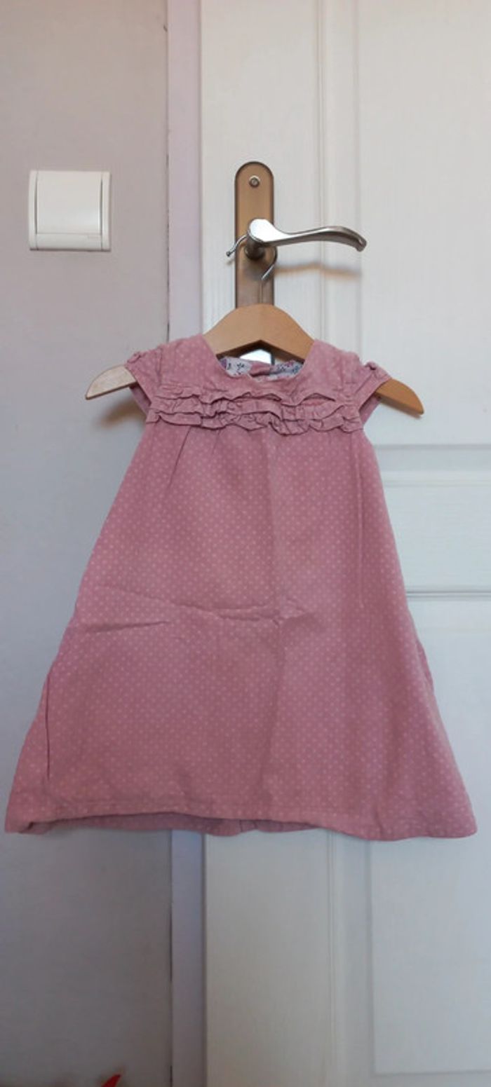 Robe courte sans manche Couleur rose pâle avec point blanc. Les boutons sont en forme de cœur Taille 24 mois Marque Sergent Major #nanadoucik_fille2ans