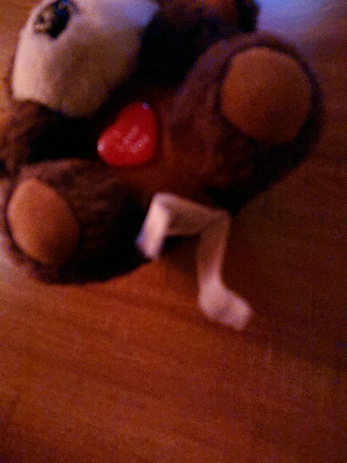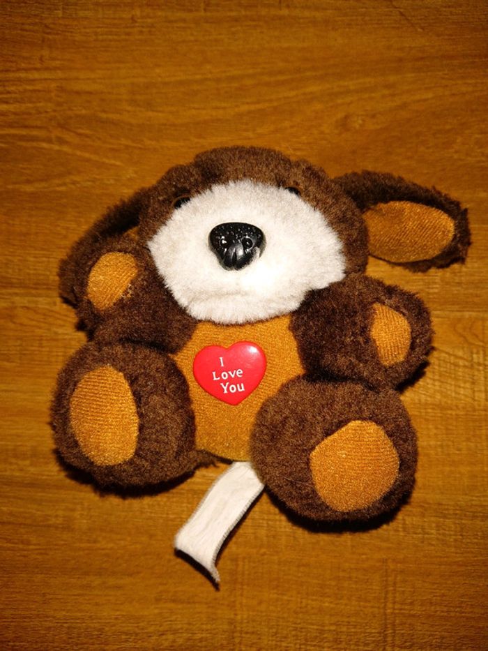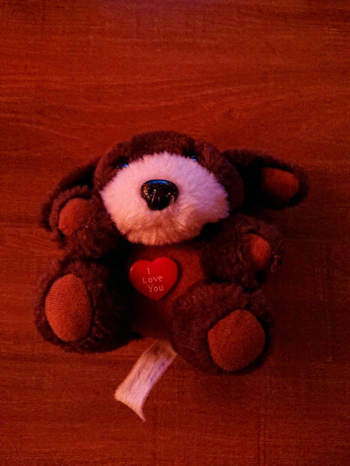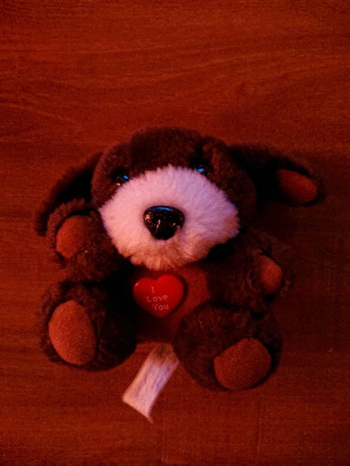 Petite peluche toutou avec cœur "I Love You" tout mimi. Non conseillé au moins de 3 ans.