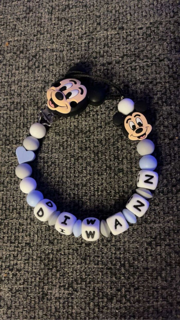 Attache tétine personnalisé en silicone ou en bois au souhait de l’acheteur . Personnalisable au choix de l’acheteur que ce soit la couleur comme le prénom ou le thème . Le fil est doublé pour plus de sécurité tout le long de l’attache tétine. N’hésitez pas à me demander et regarder mon dressing. Une photo vous sera envoyée avant l’expédition pour vous ayez un aperçu du rendu. Tous les produits sont réalisés avec du materiel spécial conçu aux bébés , enfants.