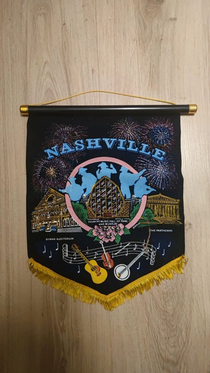Fanion bannière drapeau Tennessee Nashville Ryman auditorium Country music hall of game and museum The Parthénon Quelques petits trous de punaises voir photo Dessin qui est très légèrement craquelé