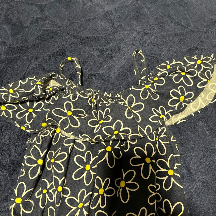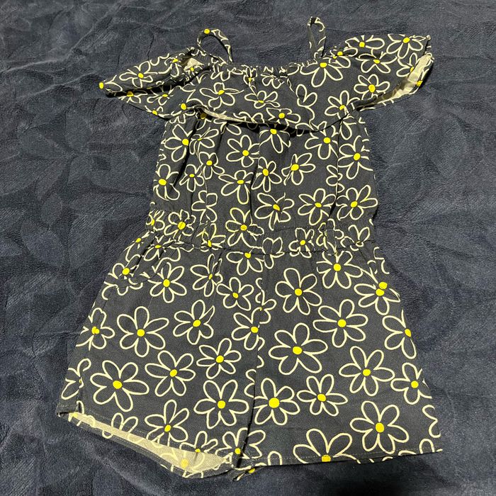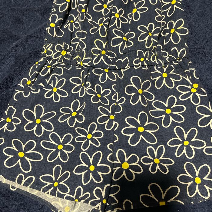 Combi short idéal pour les beaux jours. Se met et se retire facilement Couleur bleu marine à motifs fleur jaune