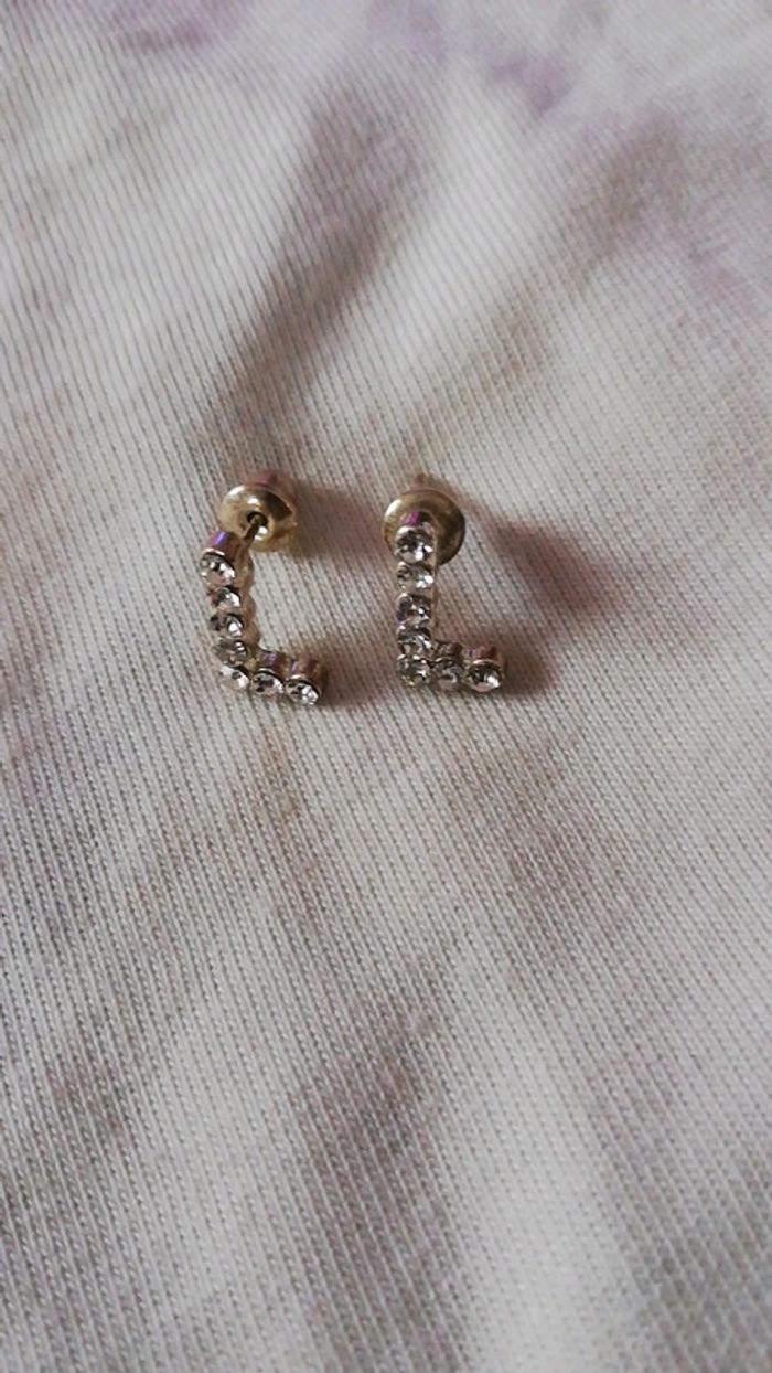Vend boucles d'oreilles fantaisie lettre L avec strass parfait état jamais porte