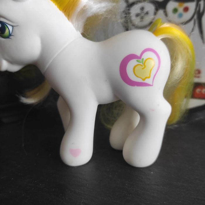 G3 My Little Pony mein kleines Poney Golden Delicious #geektradeponeyg3 Trois points d encre rouge imprégnés. Du bleu dans le creux des oreilles à enlever A coiffer Bon état  Crin un peu rêches  et potentiellement écourtés Marque Hasbro Description : Bel état Petit nettoyage à prévoir Vous achetez ce que vous voyez les photos font entièrement partie de la description Transport : Les frais de transport comprennent les frais du transporteur ainsi que l'emballage pour protéger au mieux votre achat. Chaque achat est envoyé en format colis avec numéro de suivi Le poids du colis est de 500g finit (je ne peux pas faire moins) il peut donc y avoir plusieurs objets dans le carton si vous le souhaitez (contactez moi afin de grouper les frais de port) Référencement : My little pony g3 Mon petit poney g3 Vintage/ancien /collection #geektradeponeyg3 Mon petit poney / my little pony / Mein Kleines pony / mi pequeno pony /mlp #mylittlepony #monpetitponey #poney #hasbro #vintage #ancien #collection#collectionneur #cheval #poneyg3 #ponyg3 #jouetancien #mlp #jouetfille #fille#enfant #jouet #poupée