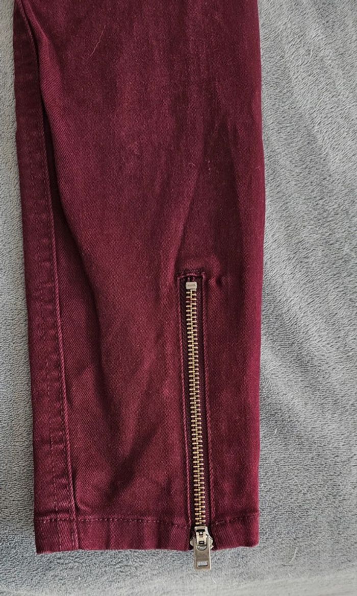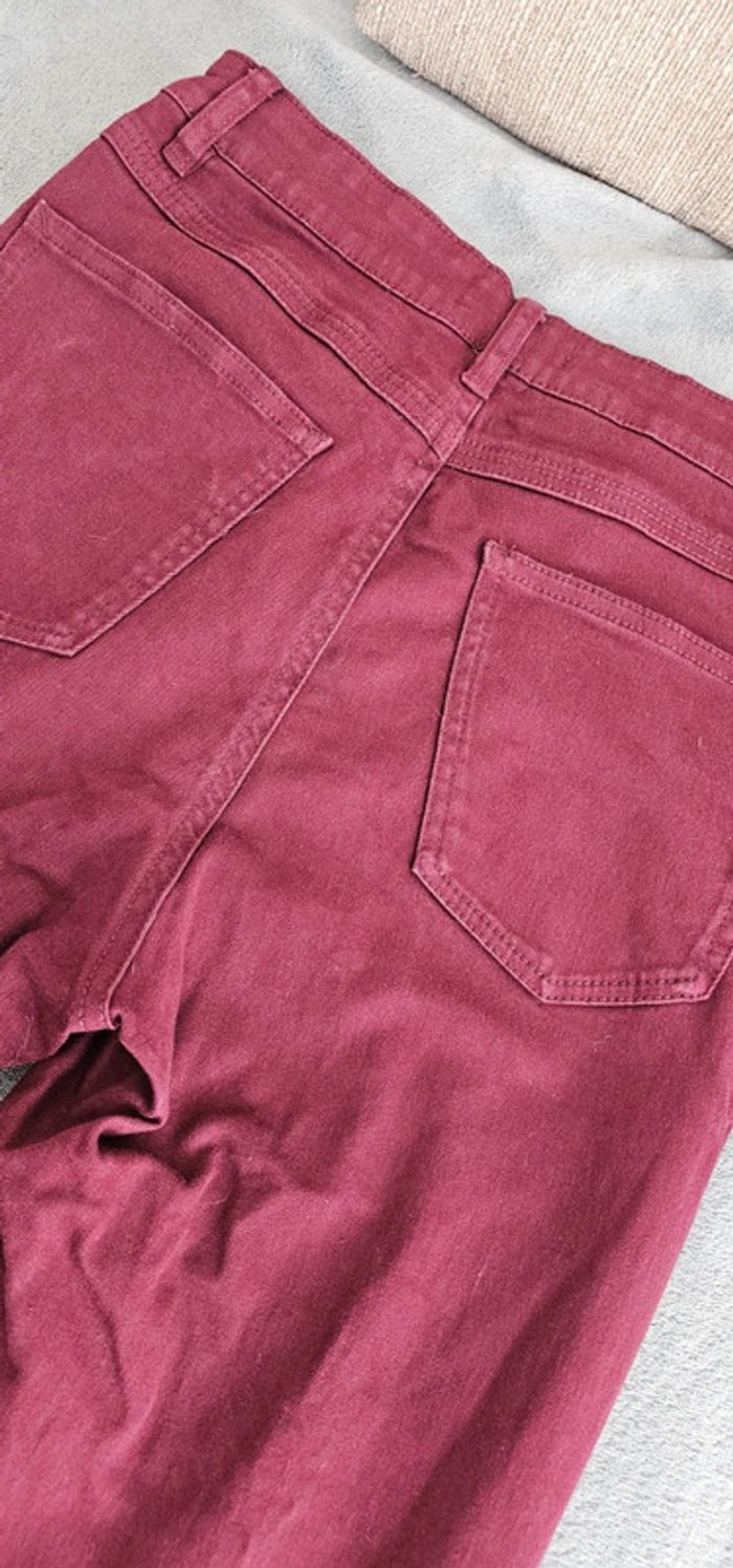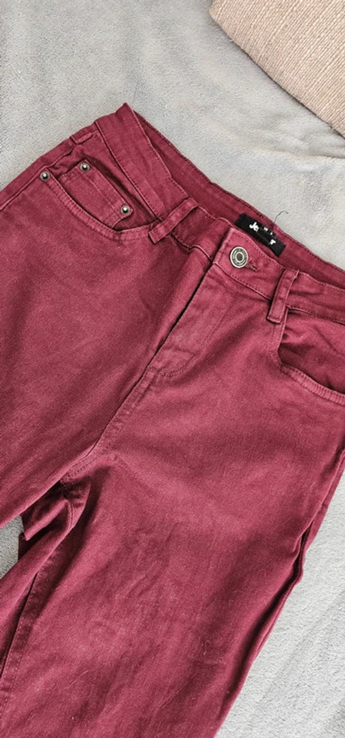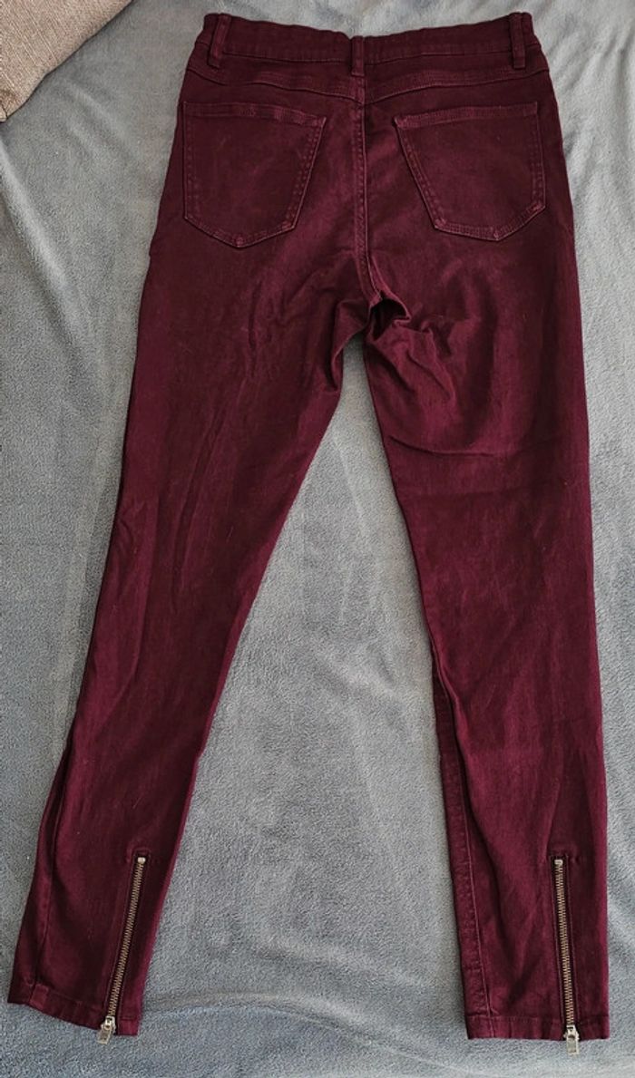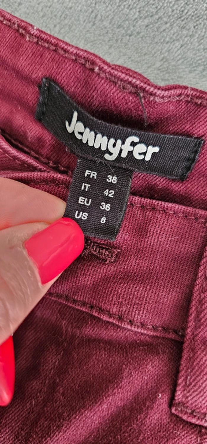Jean Jennifer Bordeaux en très bon état. Fermeture éclair en bas du Jean. Taille 38.