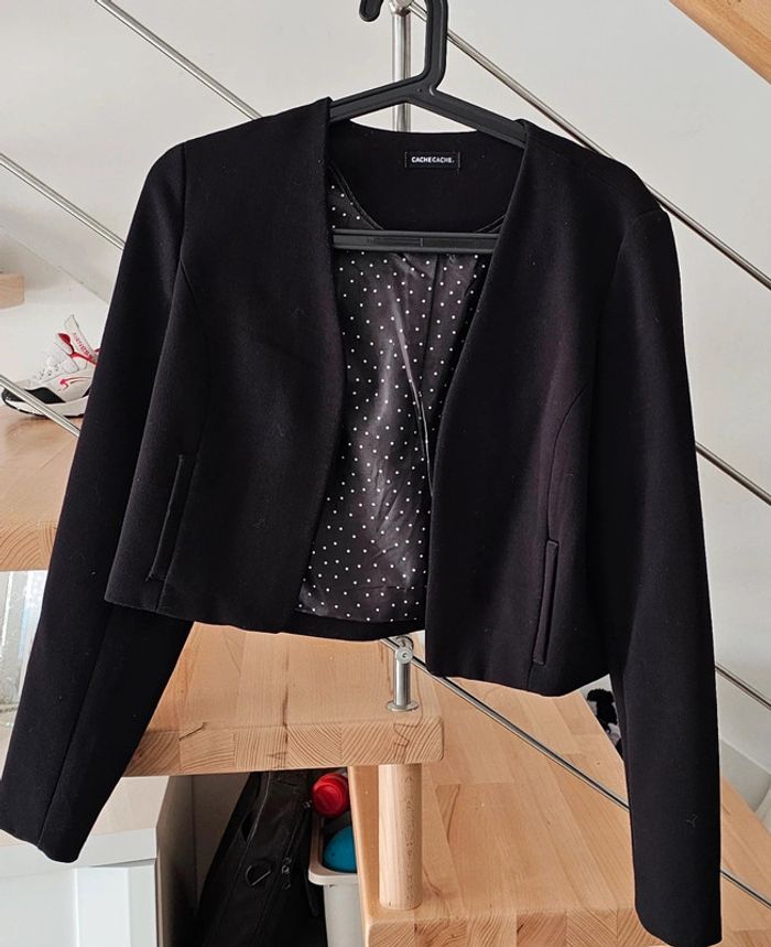Magnifique veste courte noire en excellent état. Très peu portée Taille 34