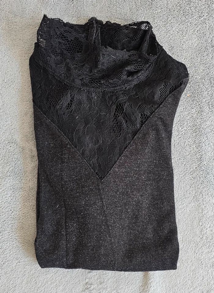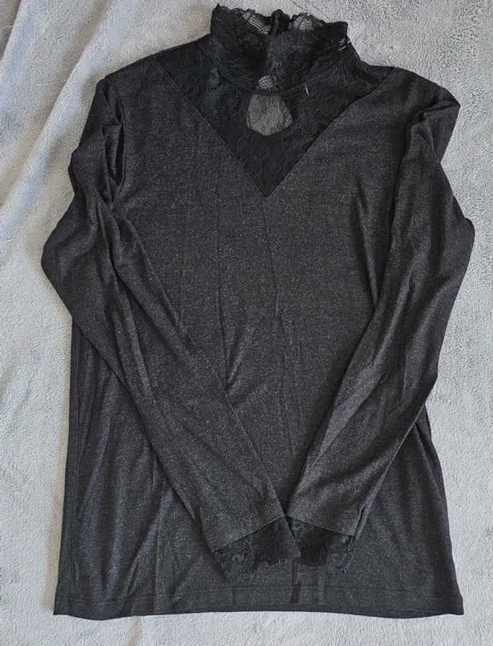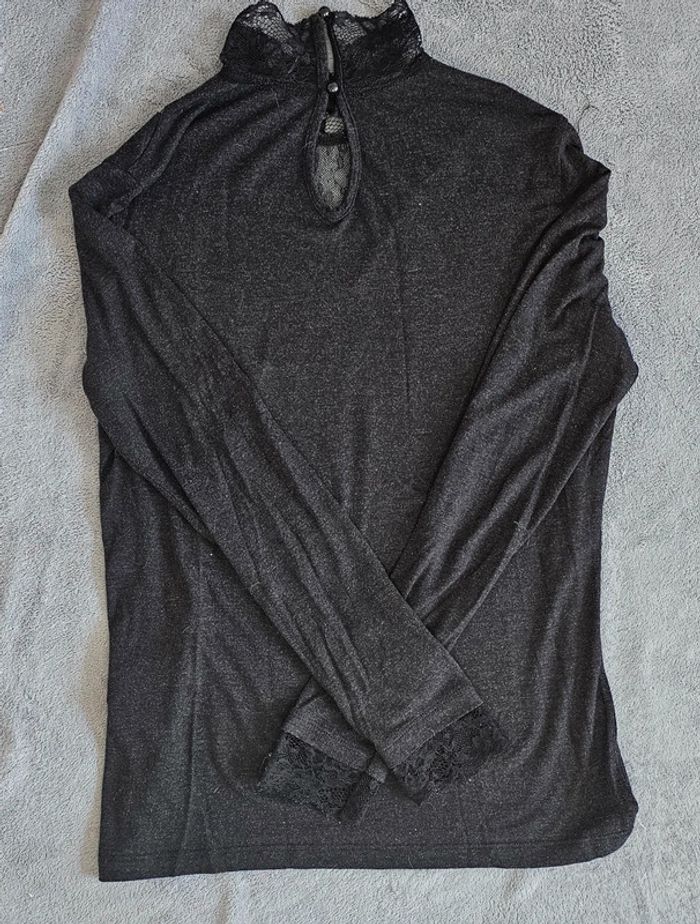 Tee shirt manche longue en très bon état. Dentelle au niveau du col et poignet. Taille S.