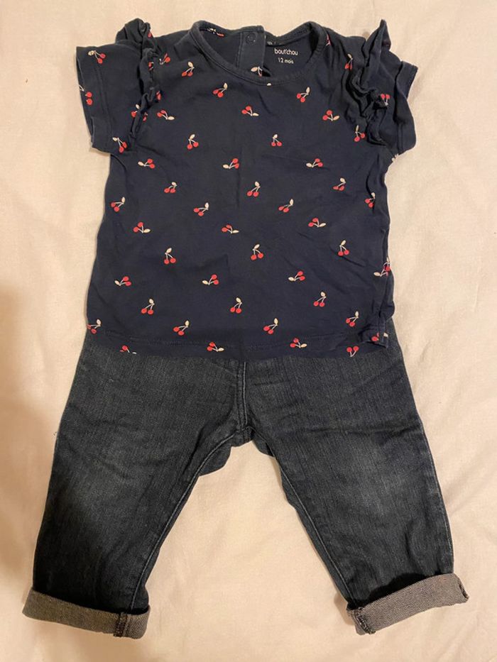 Ensemble t-shirt et jean Monoprix Boutchou En très bon état T-shirt 12 mois Jean 9 mois