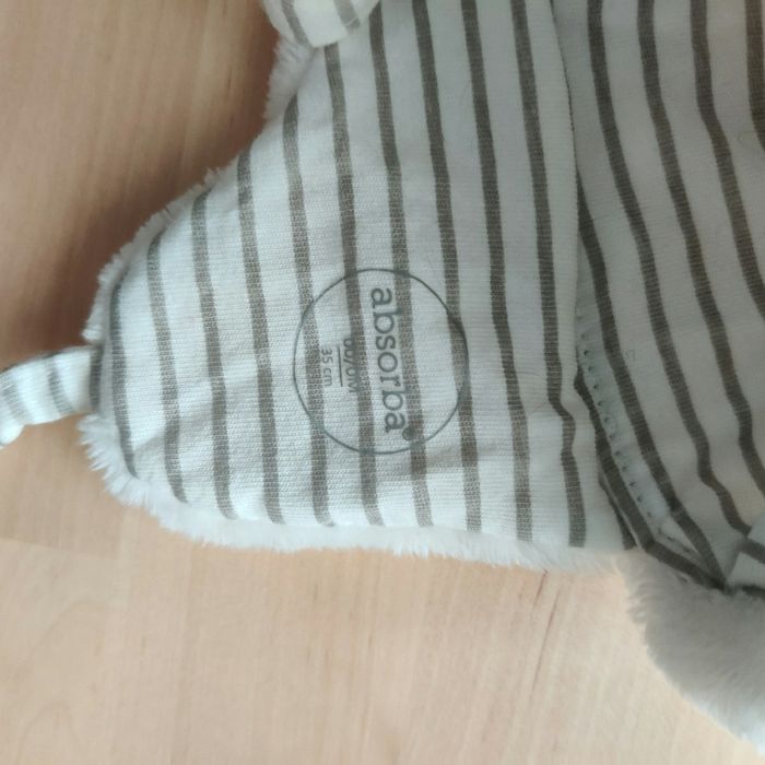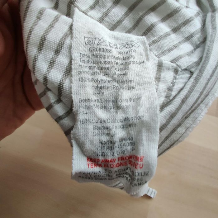Bonnet très beau parfait pour la naissance d'un futur bébé (unisexe) Très peu porté, très bonne état Ext 100% Polyester INT 100% Coton Environnement non fumeur et pas d'animaux 35cm