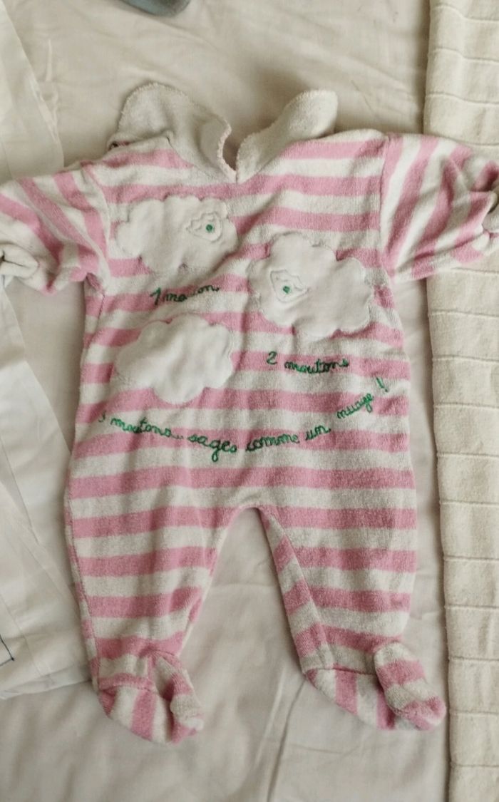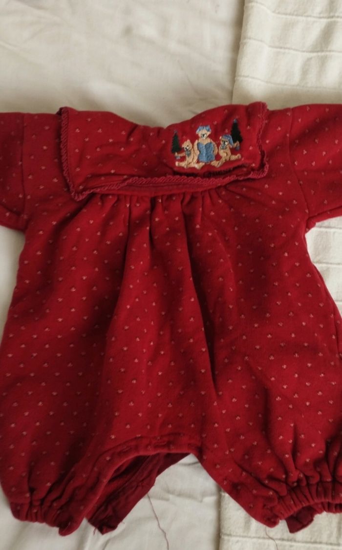 Lots vêtements bébé fille 1 paire de chaussures pointure 17 1 combinaison réversible 1 pyjamas rose et blanc 1 body blanc 1 combinaison rouge Naissance/1mois