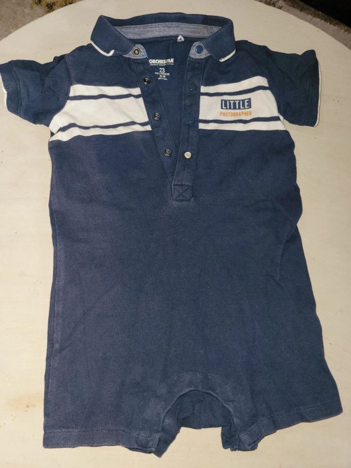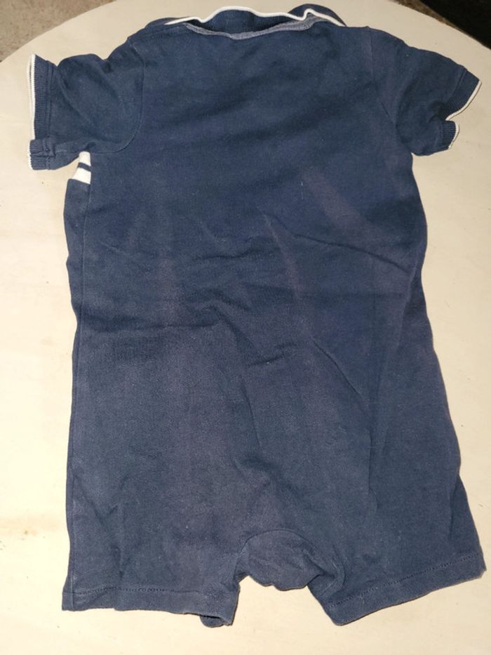 Combi short matière polo. Il y a des traces au dos (repassage ?) elles sont moins visibles en vrai mais sont là quand même ! Reste en bon état malgré tout #ositabébégarçon24mois