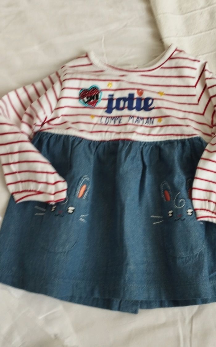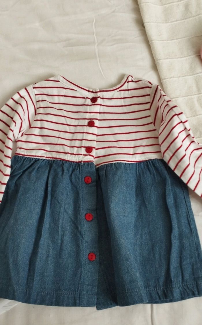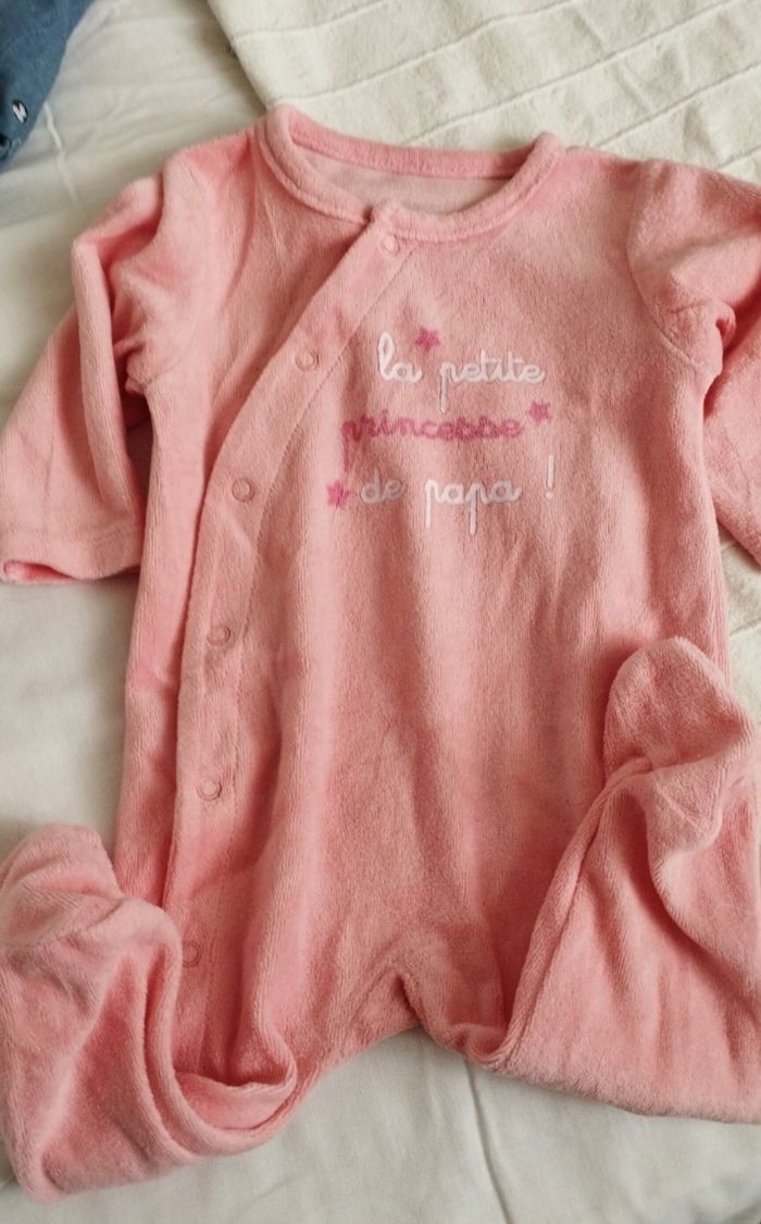 Lot vêtements bébé fille 1 robe 1 pyjamas 1 salopette mixte 1 combinaison rose et blanche