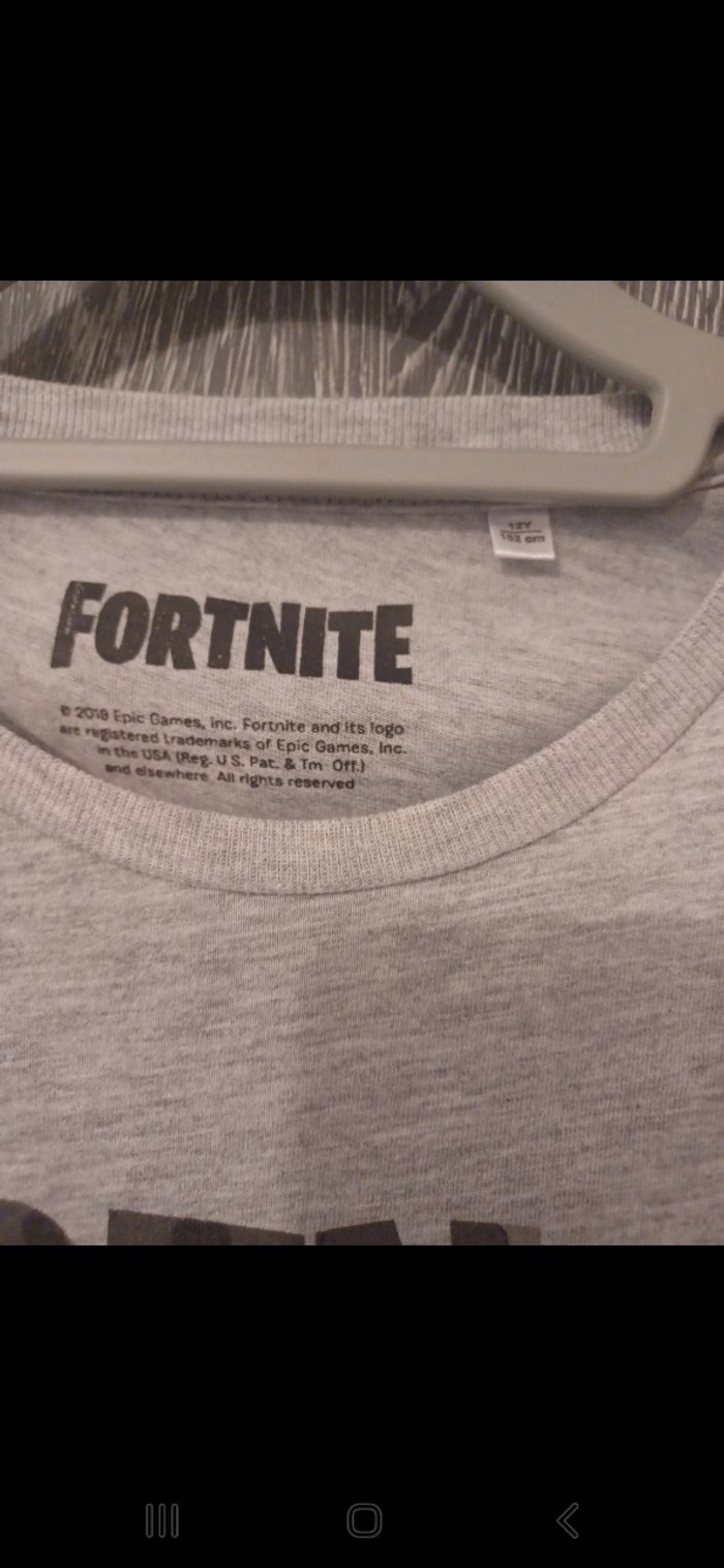 Bonjour ✴️Je vend ce tee-shirt en parfait état ✴️De la marque Fortnite ✴️Taille 12ans- 152cm ✴️50% coton, 50% polyester ✴️Colrond et manches courtes ✴️Couleur gris chiné avec logo fortnite camouflage gris