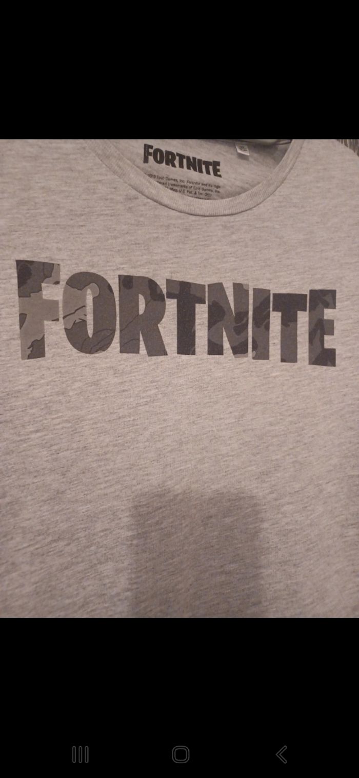 Tee-shirt manches courtes gris chiné fortnite logo camouflage garçon 12ans - photo numéro 2