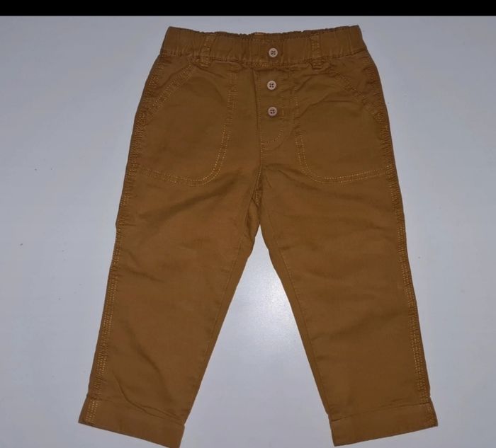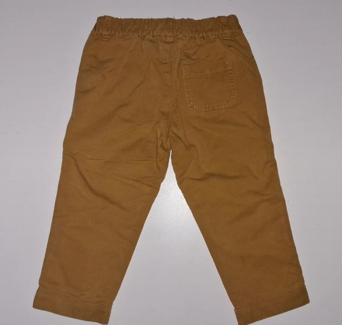 Pantalon en coton, pour mi saison car légèrement doublé, couleur moutarde, taille élastique, marque : BOUT'CHOU, pour garçon taille 18mois 81cm, très propre, sans aucun trous ni taches
