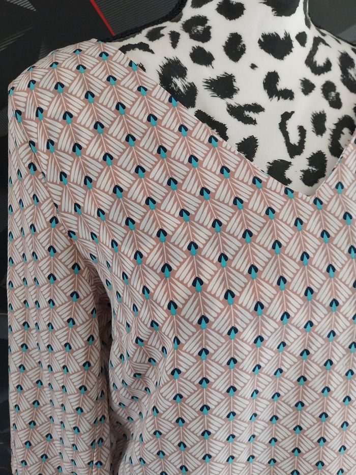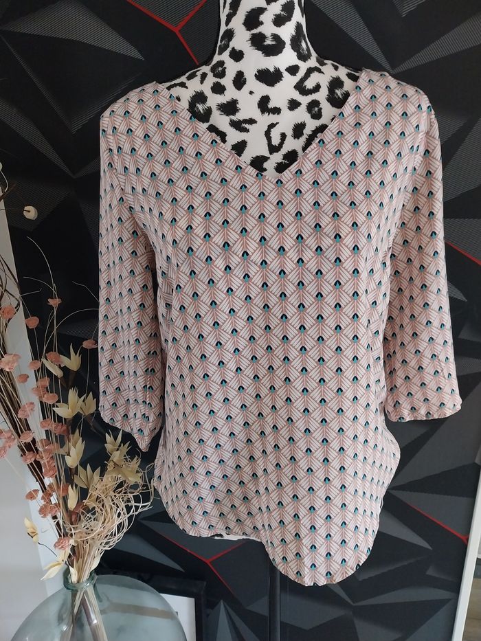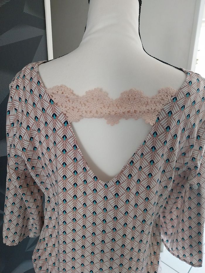 Jolie Haut col v devant et derrière avec sa dentelle derrière Manche 3/4