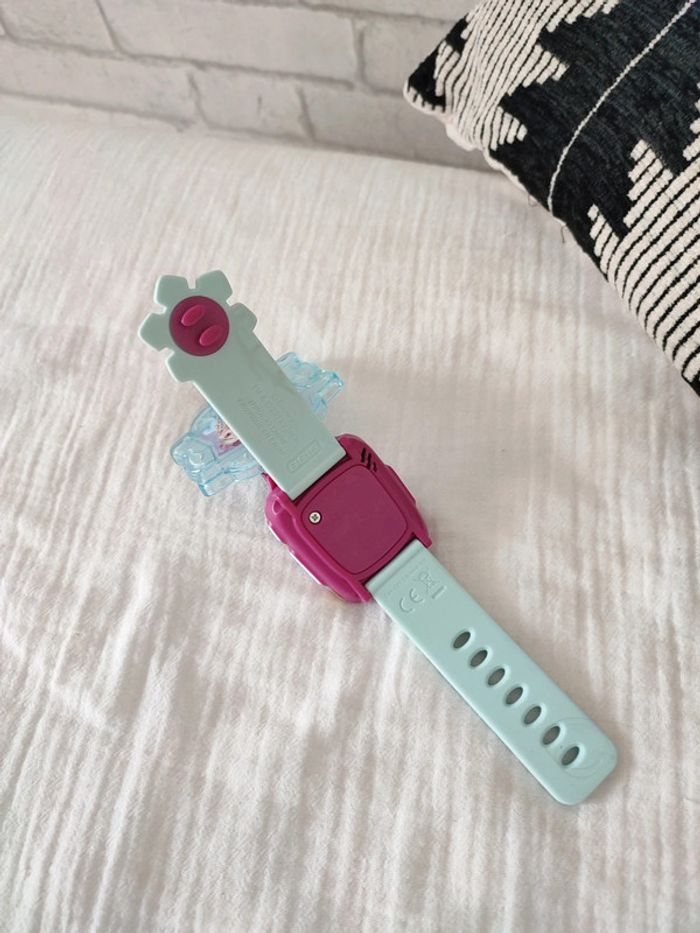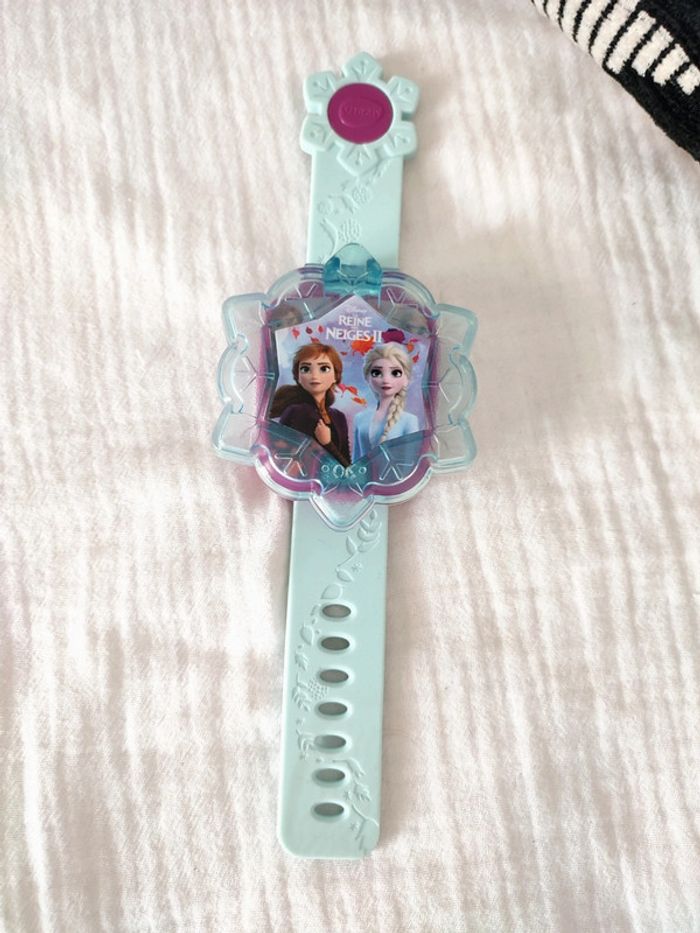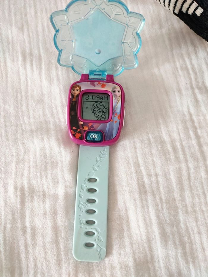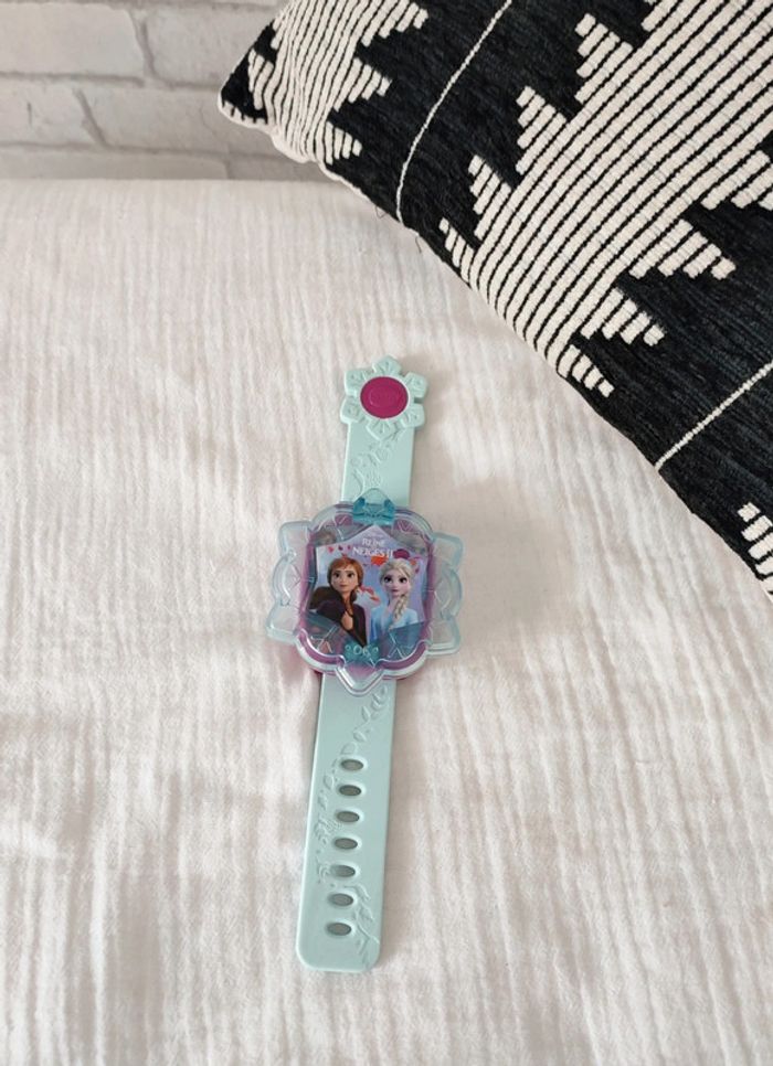 Une montre multifonction parlante aux couleurs de La Reine des Neiges 2. Avec un écran animé pour jouer et apprendre avec ses personnages préférés ! 9 cadrans Reine des Neiges 2 pour personnaliser sa montre. Un bouton lumineux pour jouer avec ses personnages préférés. 4 jeux pour faire plein de découvertes, apprendre à compter, découvrir les nombres, exercer sa mémoire et son sens de l'observation avec les personnages de la Reine des Neige 2. Double affichage de l'heure : analogique ou digital. Fonctions alarme/ réveil, coucou (qui retentit toutes les heures, fonction désactivable), chronomètre et sablier. Avec la vraie voix des personnages de La Reine des Neiges 2