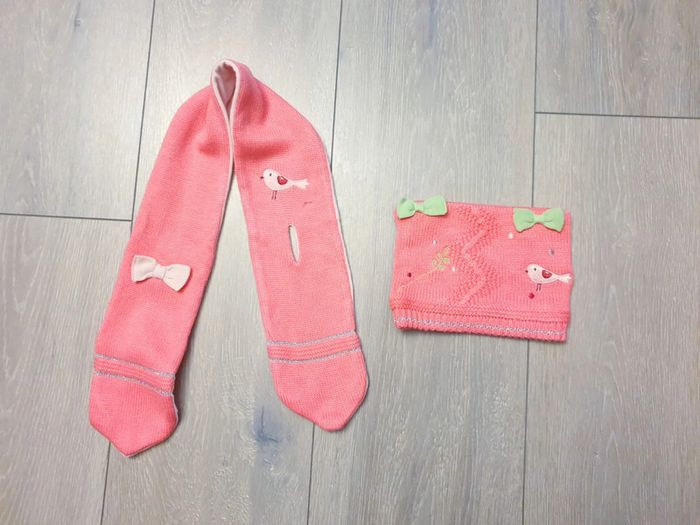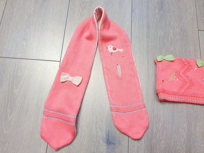 Bonnet 38 cms + écharpe rose . Taille unique Fille 3 mois. Marque Orchestra En excellent état comme neuf Il y a plein d autres articles dans cette taille dans mon dressing  🤗 #lunaclara60fille3mois