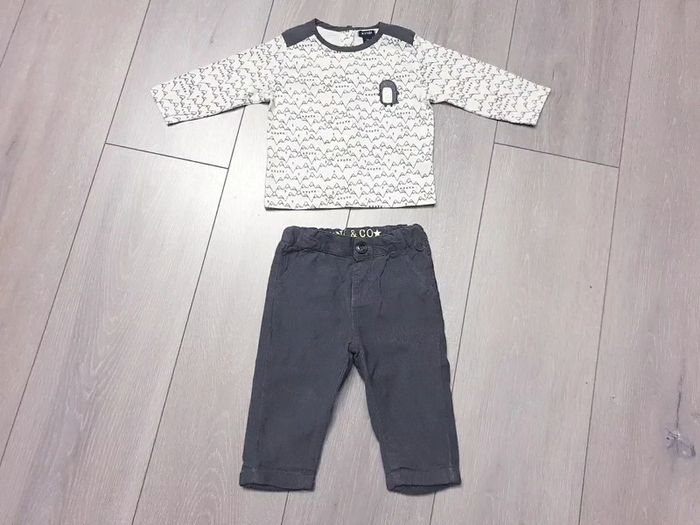 Ensemble 2 pièces : - maillot gris et crème. - pantalon gris en velour. Garçon 6 mois. Marque Kiabi Très bon état Il y a plein d autres articles dans cette taille dans mon dressing  🤗 #lunaclara60garcon6mois