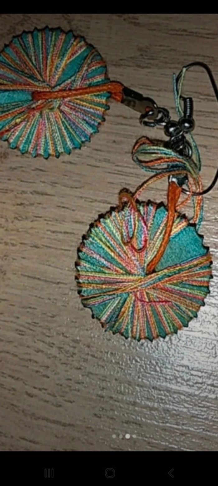 Collier fantaisiste très coloré. Cache cache avec perles et cercles cartonnés Bague assortie et réglable. J offre la paire de boucles d oreilles dont l une est à réparer (fils à remettre) #nerakabijoux