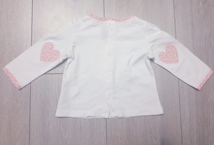 Maillot manche longue blanc avec motif rose et coeur sur les manche a l arrière Fille 6 mois. Marque Sergent Major Tres bon etat Il y a plein d autres articles dans cette taille dans mon dressing  🤗 #lunaclara60fille6mois