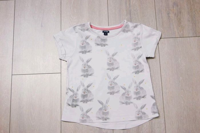 Maillot manche courte blanc à motif lapin gris 5 ans fille. Marque Kiabi Très bon état Il y a plein d autres articles dans cette taille dans mon dressing  🤗 #lunaclara60fille5ans