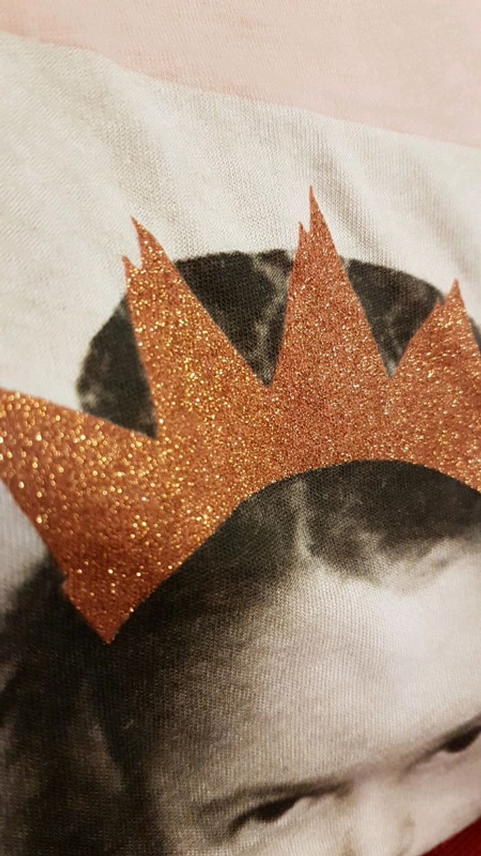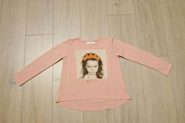 Maillot manche longue, motif fille boueuse avec couronne cuivre brillante 7/8 ans , 128 cms donc 8 ans Marque Mango Très bon etat Il y a plein d autres articles dans cette taille dans mon dressing  🤗 #lunaclara60fille8ans
