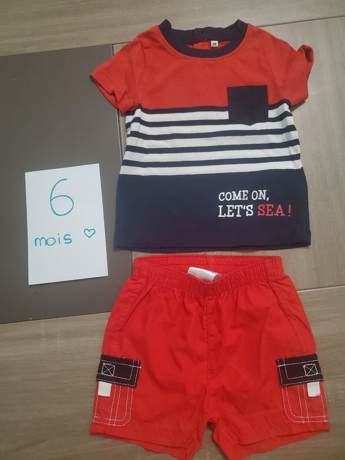 Ensemble tshirt + short rouge et marine, en parfait etat, jamais porté, seulement lavé.