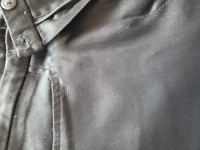 Pantalon satiné mais pas fin en bon état voir photo 1 côté un peu râpé remises sur les lots