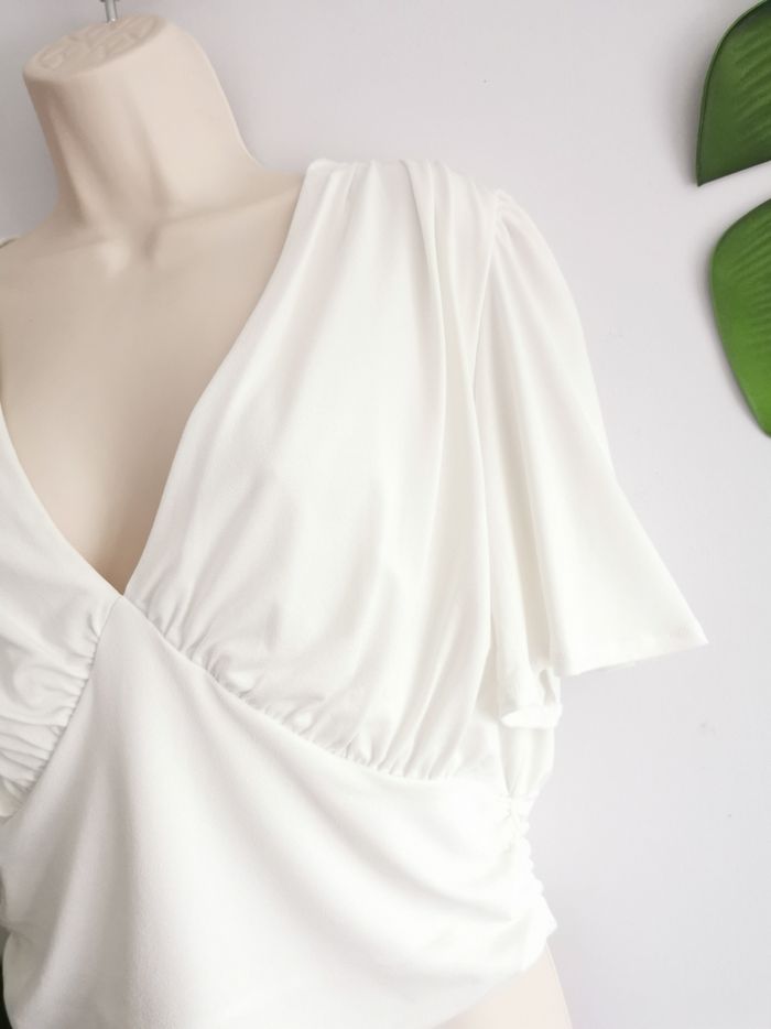 Top court blanc froncé H&M Taille L - photo numéro 7