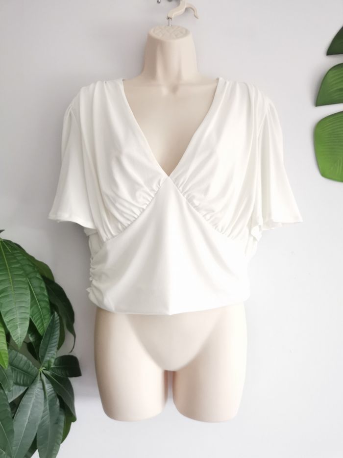 Top court blanc froncé H&M Taille L - photo numéro 2
