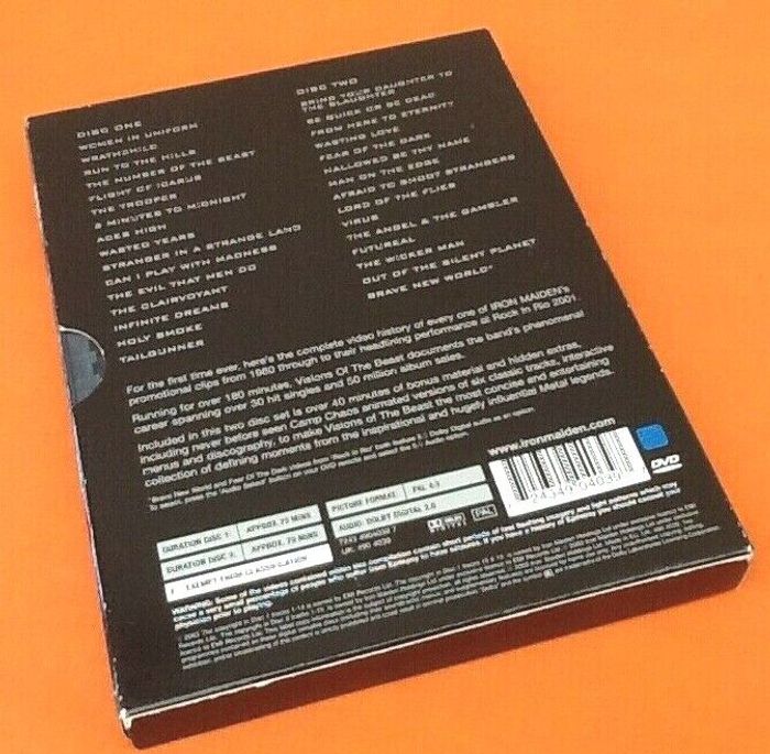 Coffret 2 DVD Iron Maiden Visions of the Beast (2003) The Complete Vidéo History Women In Uniform Wrathchild Run To The Hills The Number Of The Beast Flight Of Icarus The Trooper 2 Minutes To Midnight Aces High Wasted Years Stranger In A Strange Land Can I Play With Madness The Evil That Men Do The Clairvoyant Infinite Dreams Holy Smoke Tailgunner Fear Of The Dark * Bring Your Daughter To The Slaughter Be Quick Or Be Dead From Here To Eternity Wasting Love Fear Of The Dark Hallowed Be Thy Name Man On The Edge Afraid To Shoot Strangers Lord Of The Flies Virus The Angel & The Gambler Futureal The Wicker Man Out Of The Silent Planet Brave New World *