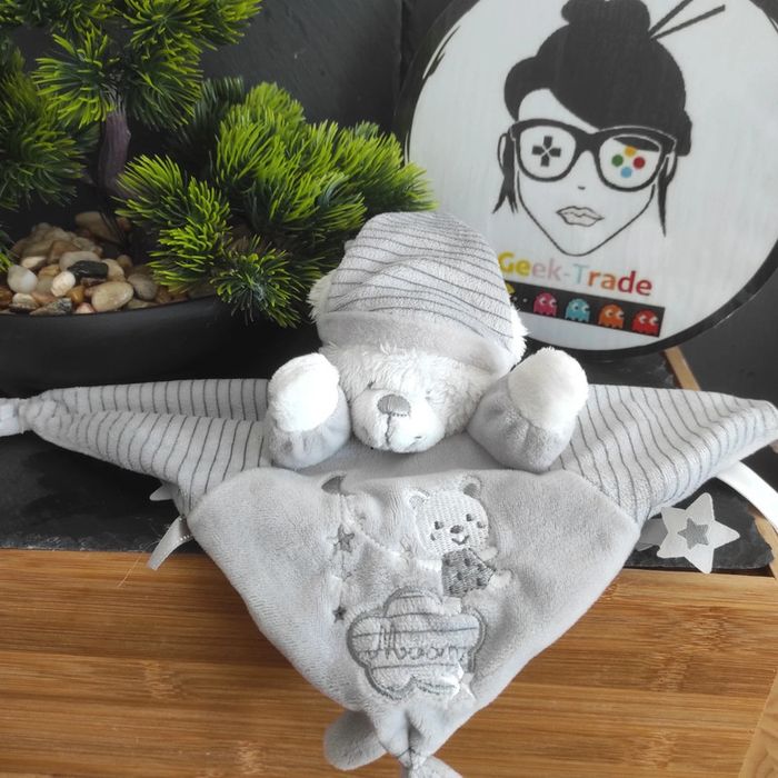 Doudou Max & Sax doudou plat ours gris blanc étoile nuage Lune moon Carrefour Afin de ne pas abîmer les doudous et de laisser le choix dans l'utilisation de la lessive les peluches ne sont pas lavées avant envoi Description complément : Petit nettoyage à prévoir Vous achetez ce que vous voyez les photos font entièrement partie de la description Transport : Les frais de transport comprennent les frais du transporteur ainsi que l'emballage pour protéger au mieux votre achat. Chaque achat est envoyé en format colis avec numéro de suivi Le poids du colis est de 500g finit (je ne peux pas faire moins) il peut donc y avoir plusieurs objets dans le carton si vous le souhaitez (contactez moi afinde grouper les frais de port) Référencement : #geektradedoudou #peluche #plush  #doudou #enfan