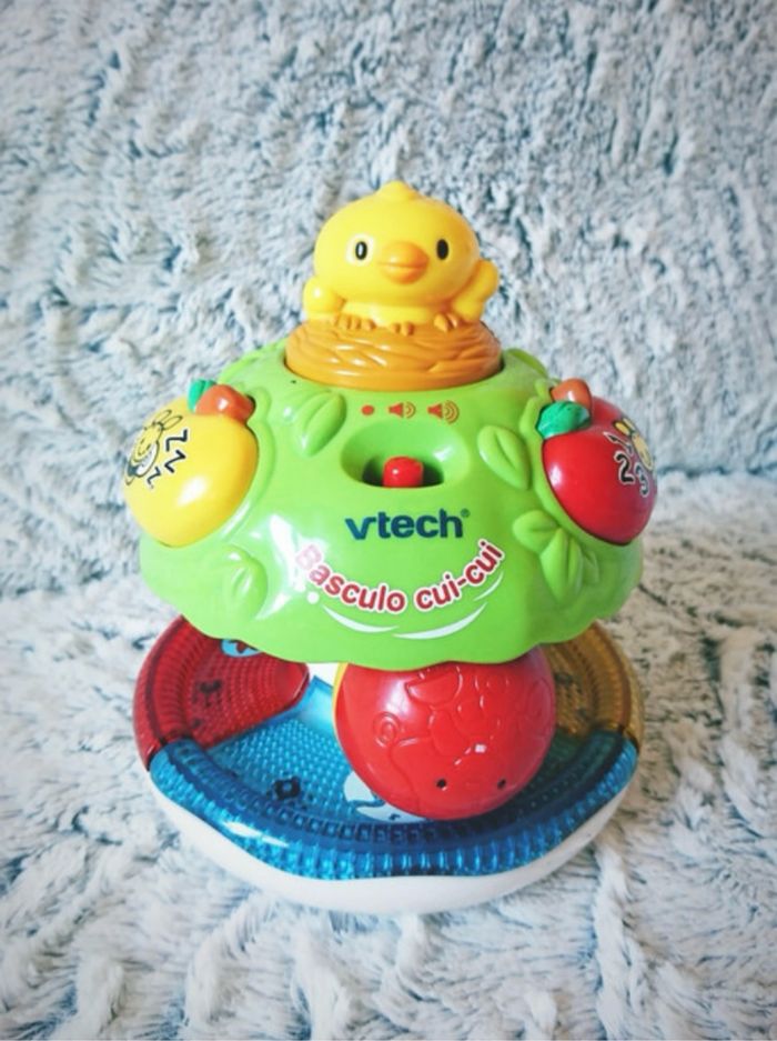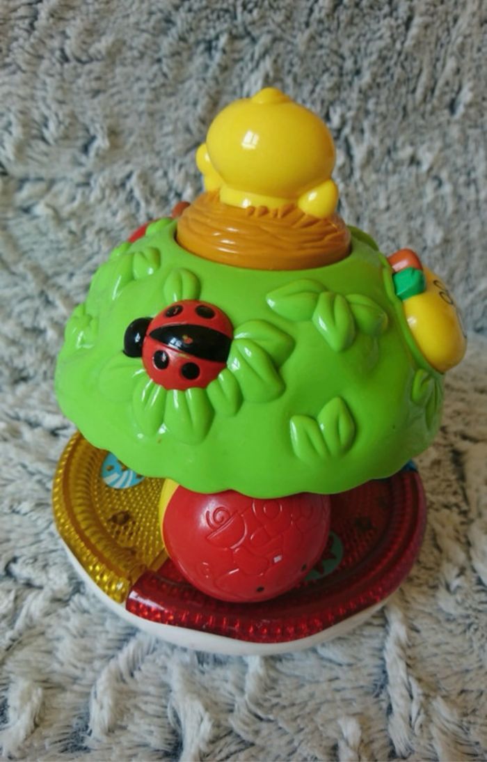 Un culbuto musical, parlant et lumineux en forme d’arbre.Une balle bicolore roule en suivant le mouvement du culbuto et déclenche des lumières sur la base.2 touches déclenchent de petites phrases amusantes et apprennent à Bébé le nom des animaux, les premiers chiffres et les couleurs.Lorsque Bébé appuie sur l’oiseau, il se met à parler et à chanter.3 touches musicales lumineuses – 6 mélodies et une adorable comptine chantée (« à la volette »).Réglage du volume et arrêt automatique. Age : 6 - 24 mois 2 piles LR06 Non incluses Maison Non Fumeur 🚭 Très Bon État ✅ Envoi Rapide 📦 Locker à proximité 📮