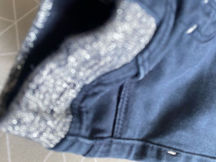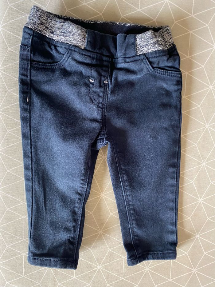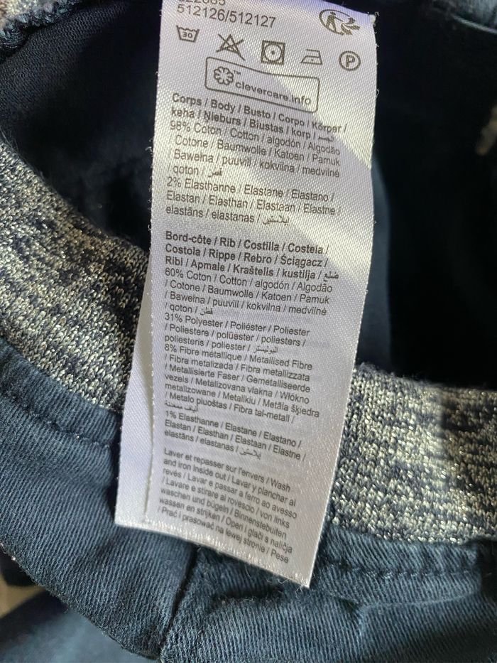Pantalon Jegging bleu marine ceinture bord cote chiné bleu marine et argenté pailletée Taille 9 mois 98% coton 2% elasthane Gémo