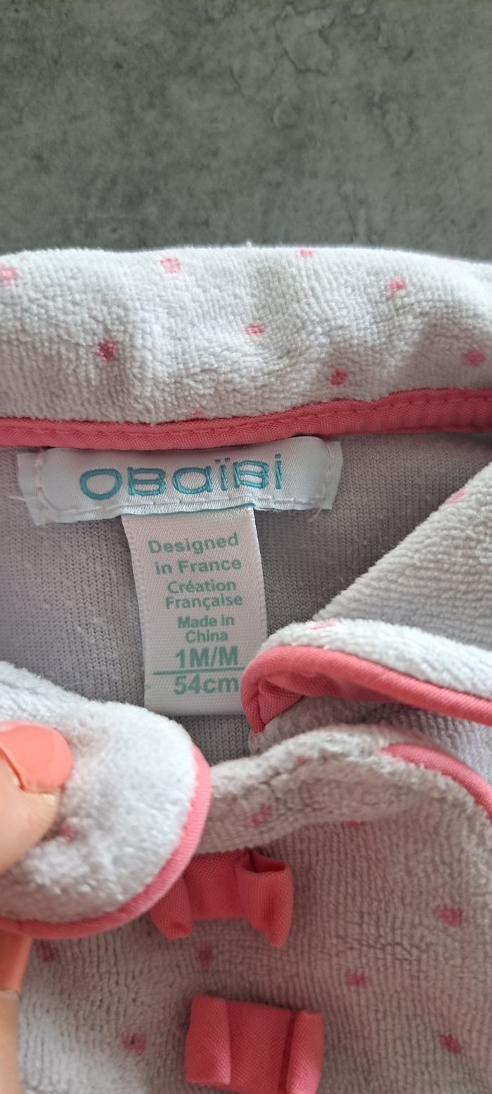 Pyjama 1 pièce bébé Taille 1mois (53cm) Couleur gris et rose Marque obaibi
