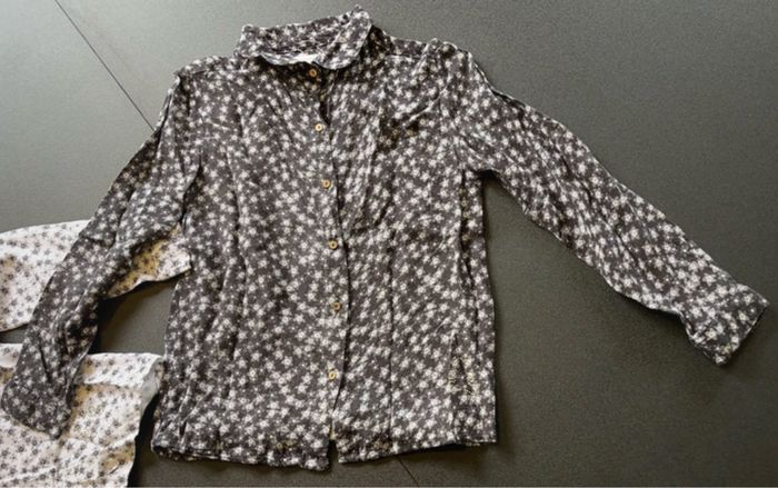 Lot de 2 chemises de marque lulu castagnette très peu porté taille 10 ans , dernier bouton de la chemise blanche fragile à recoudre rien de méchant